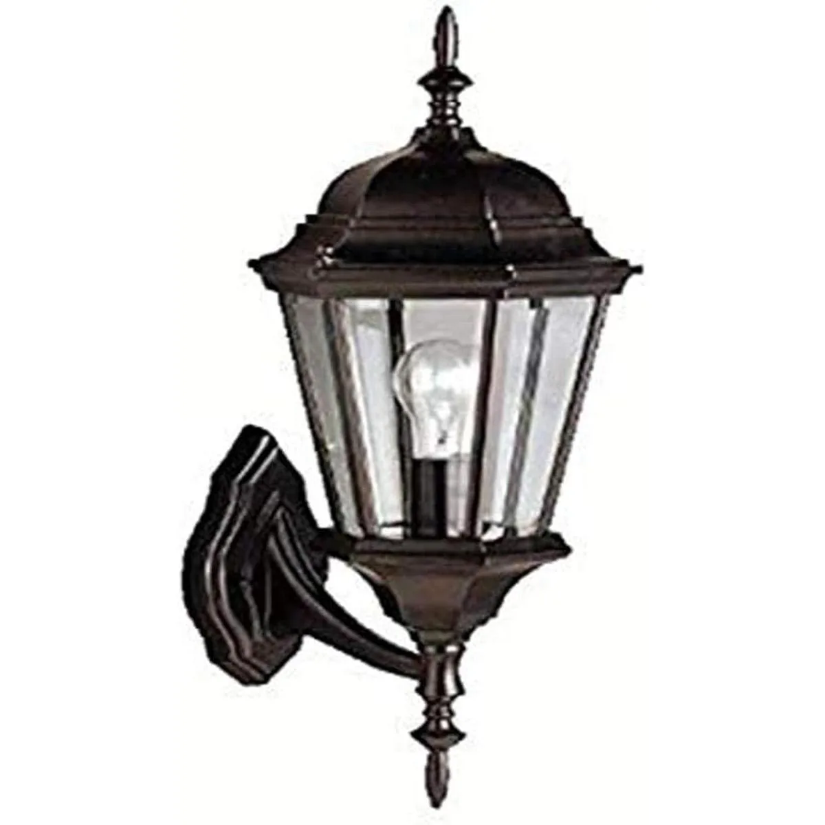 La lámpara de pared Madison 1 para exteriores en negro cuenta con vidrio biselado transparente y utiliza equivalente a bombilla de 100 vatios máximo