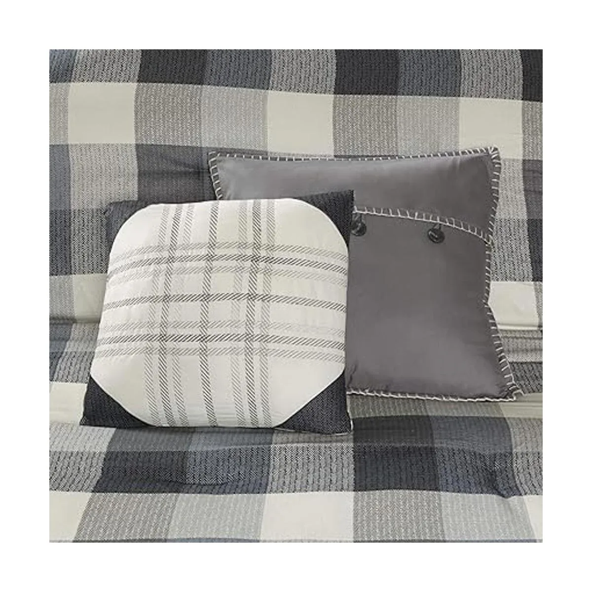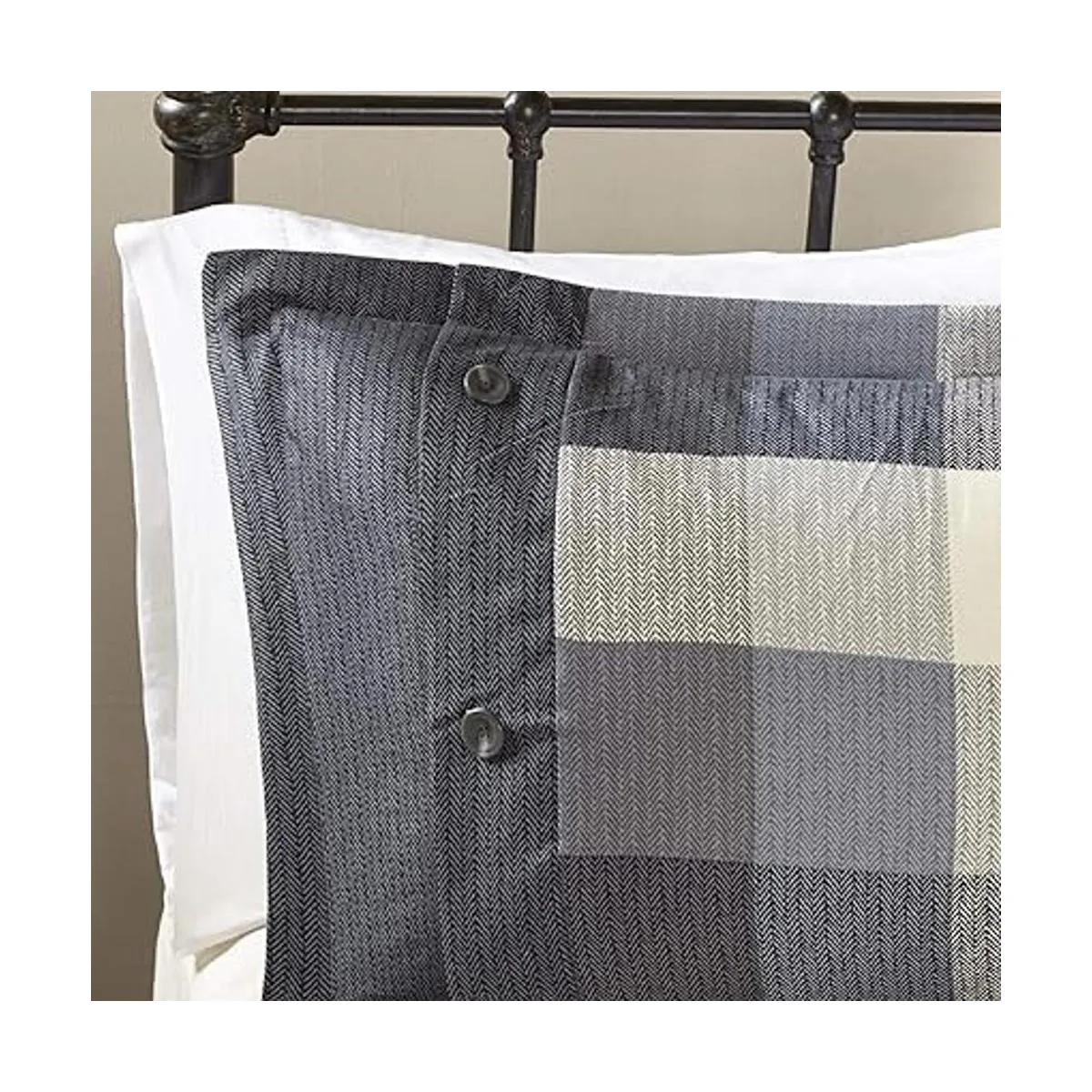 Patrón de cuadros de búfalo, tela de espiga impresa, dobladillo bordado cosido a mano en almohada decorativa
