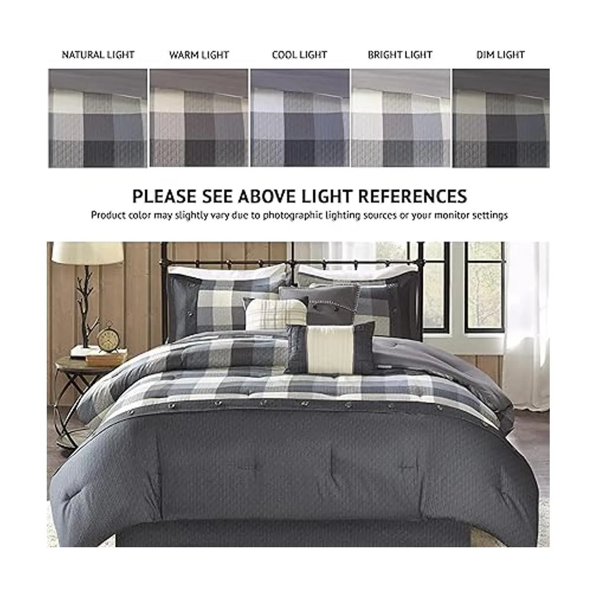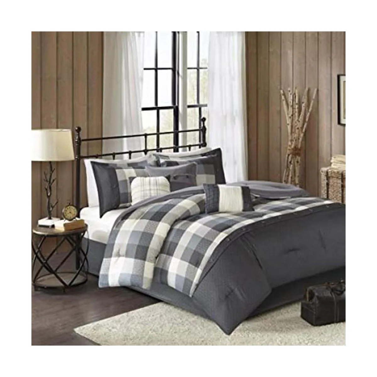 1 edredón: 104 pulgadas de ancho x 92 pulgadas de largo. 2 fundas de almohada King: 20 pulgadas de ancho x 36 pulgadas de largo 2 pulgadas de profundidad. 1 falda de cama: 78 pulgadas de ancho x 80 pulgadas de largo 15 pulgadas de profundidad. 3 almohadas decorativas: 18 pulgadas de ancho x 18 pulgadas de largo