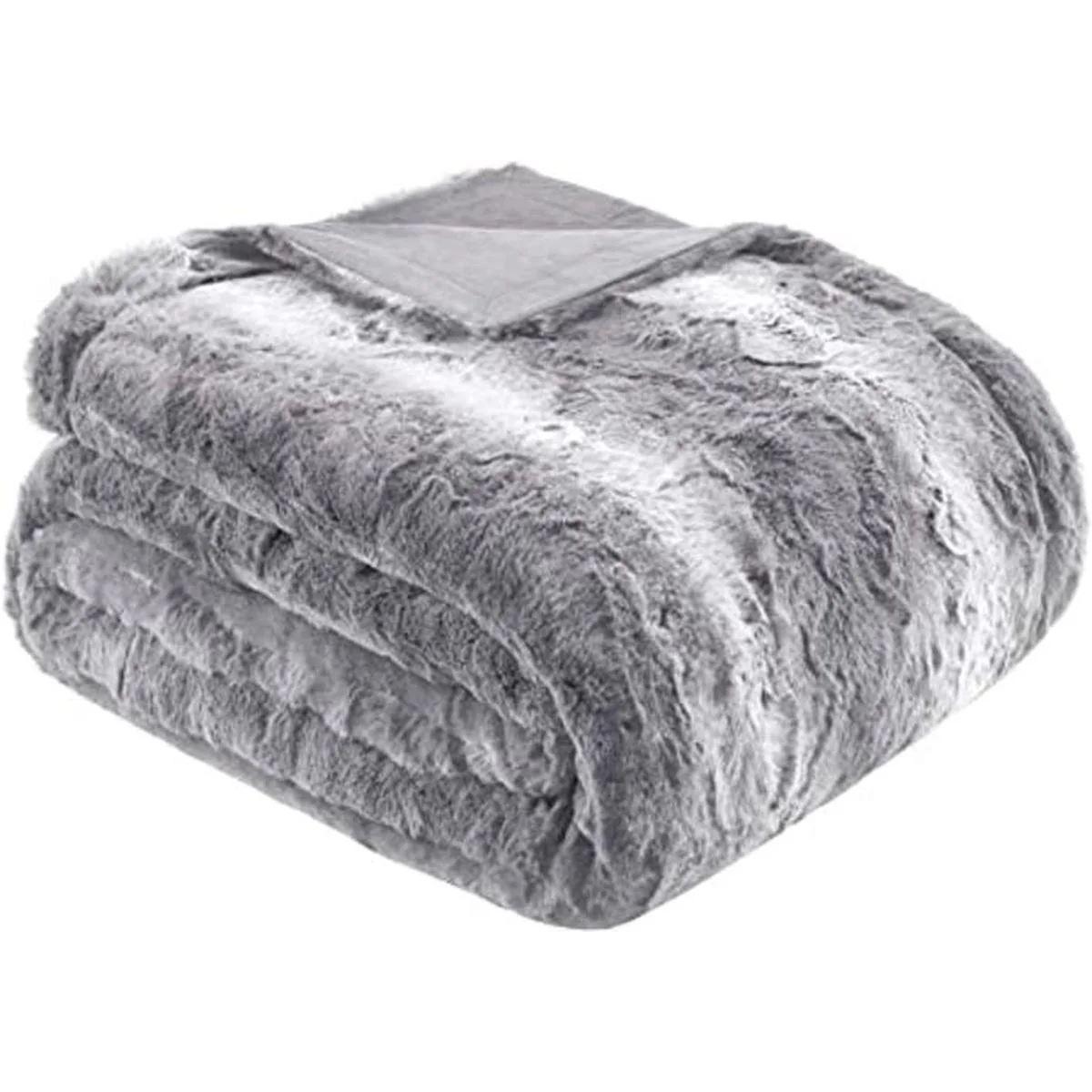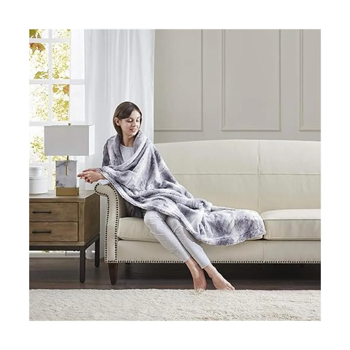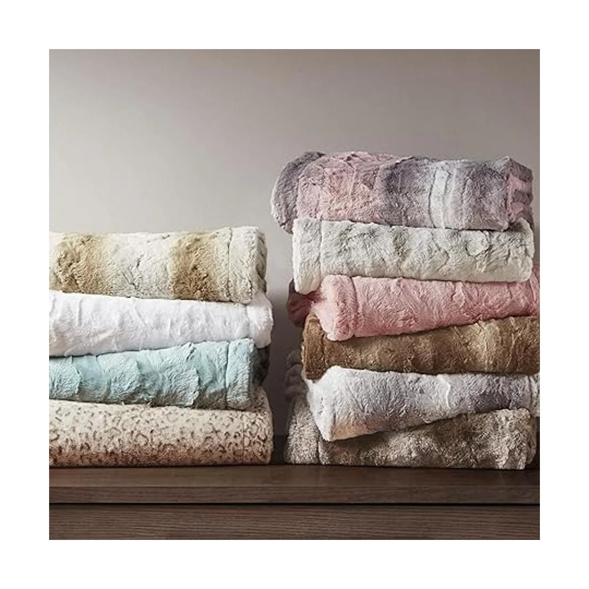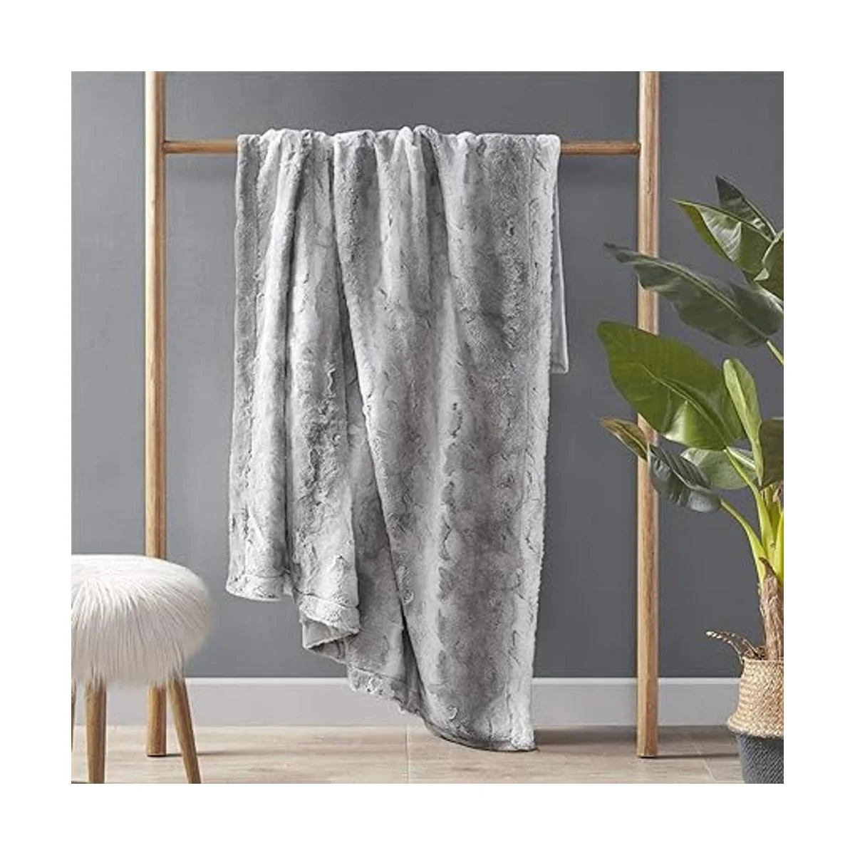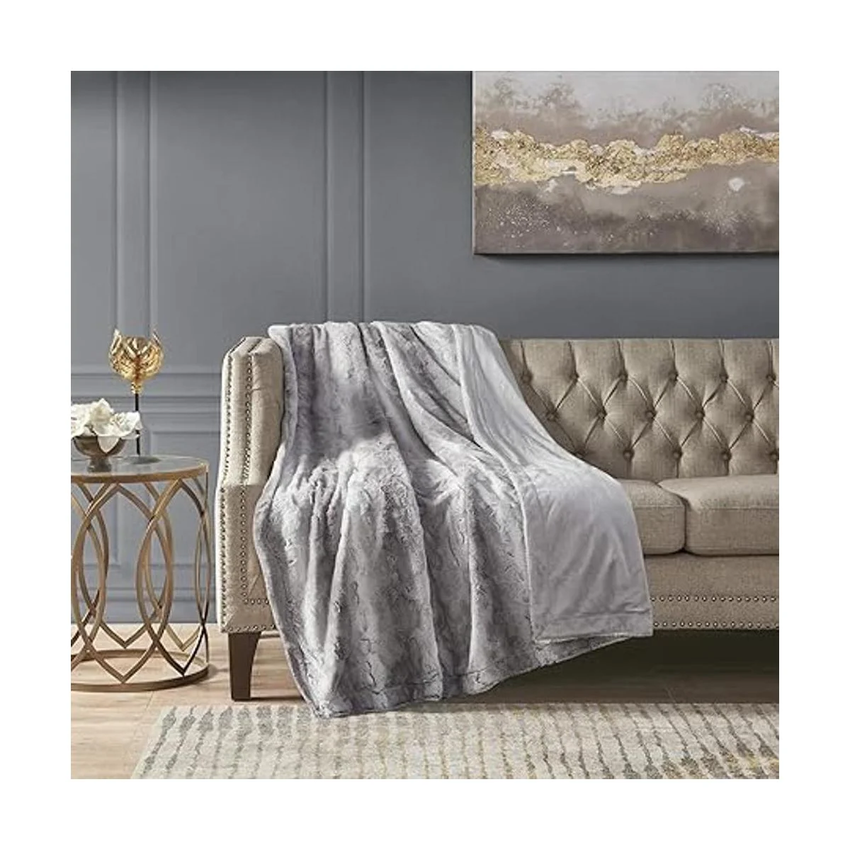 Madison Park Zuri Manta de piel sintética de gran tamaño con diseño de rayas de animales, visón sintético en la parte trasera, moderna manta para clima frío para cama, sofá, 60 x 70 pulgadas, color gris