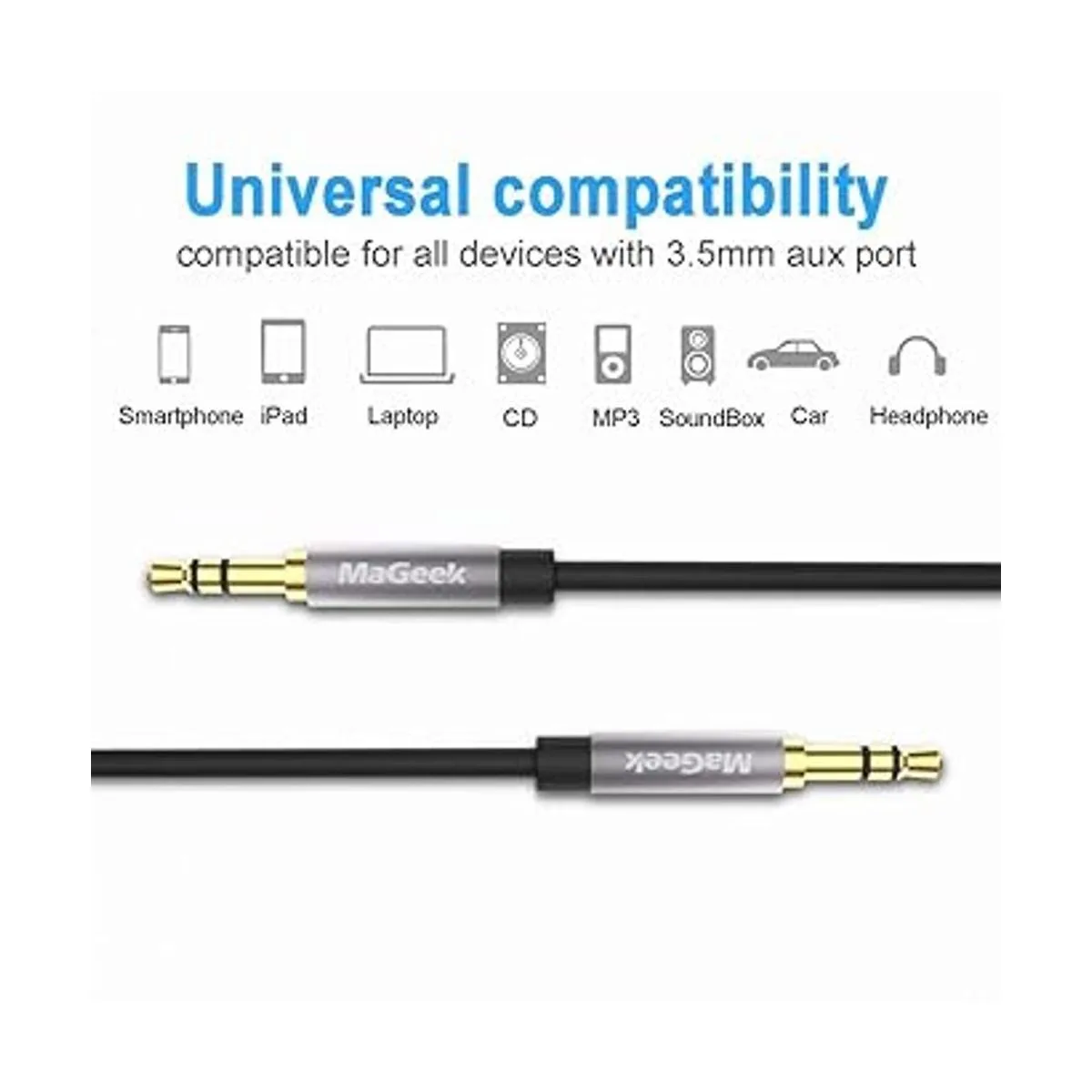 Incluye: dos cables de audio auxiliares MaGeek de 3.3 pies, garantía de 18 meses y servicio al cliente amigable.