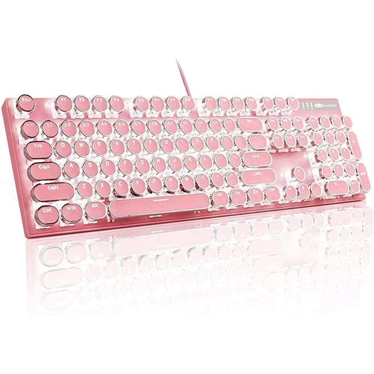 Teclado mecánico de estilo retro para máquina de escribir: es un teclado negro bonito y divertido, tecla redonda punk chapada con hermoso interruptor azul que hace que escribir sea agradable, como una máquina de escribir.