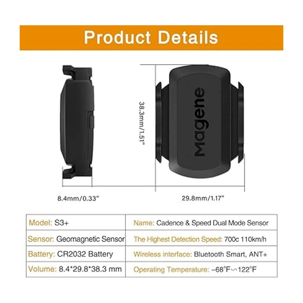 Magene Sensor de velocidadcadencia para uso al aire libreinterior para ciclismo, Bluetooth inalámbricoAnt Bike Computer Sensor RPM para bicicleta de carretera o bicicleta giratoria y entrenadores compatibles con Onelap, Wahoo Fitness, Zwift, Strava