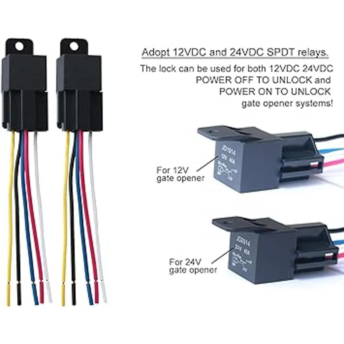 Compatible con fuente de alimentación de 12 V CC y 24 V CC: la cerradura puede ser alimentada por 12 V CC o 24 V CC de acuerdo con diferentes cableados Se requiere un adaptador de corriente separado de 24 V CC/2 A para ser utilizado para la cerradura si se utiliza con un abridor de puerta Liftmaster de 24 V CC