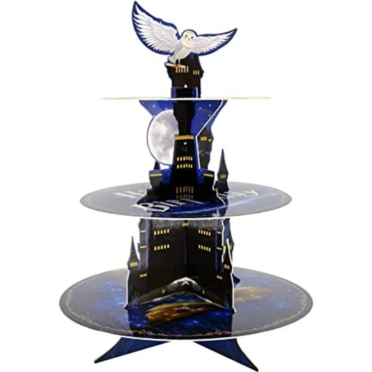 Magical Magizard Soporte para cupcakes de 3 niveles, decoración de fiesta de Harry School para tartas, suministros únicos para cumpleaños, fiesta de Halloween, recuerdos de fiesta de cosplay, decoración de mesa