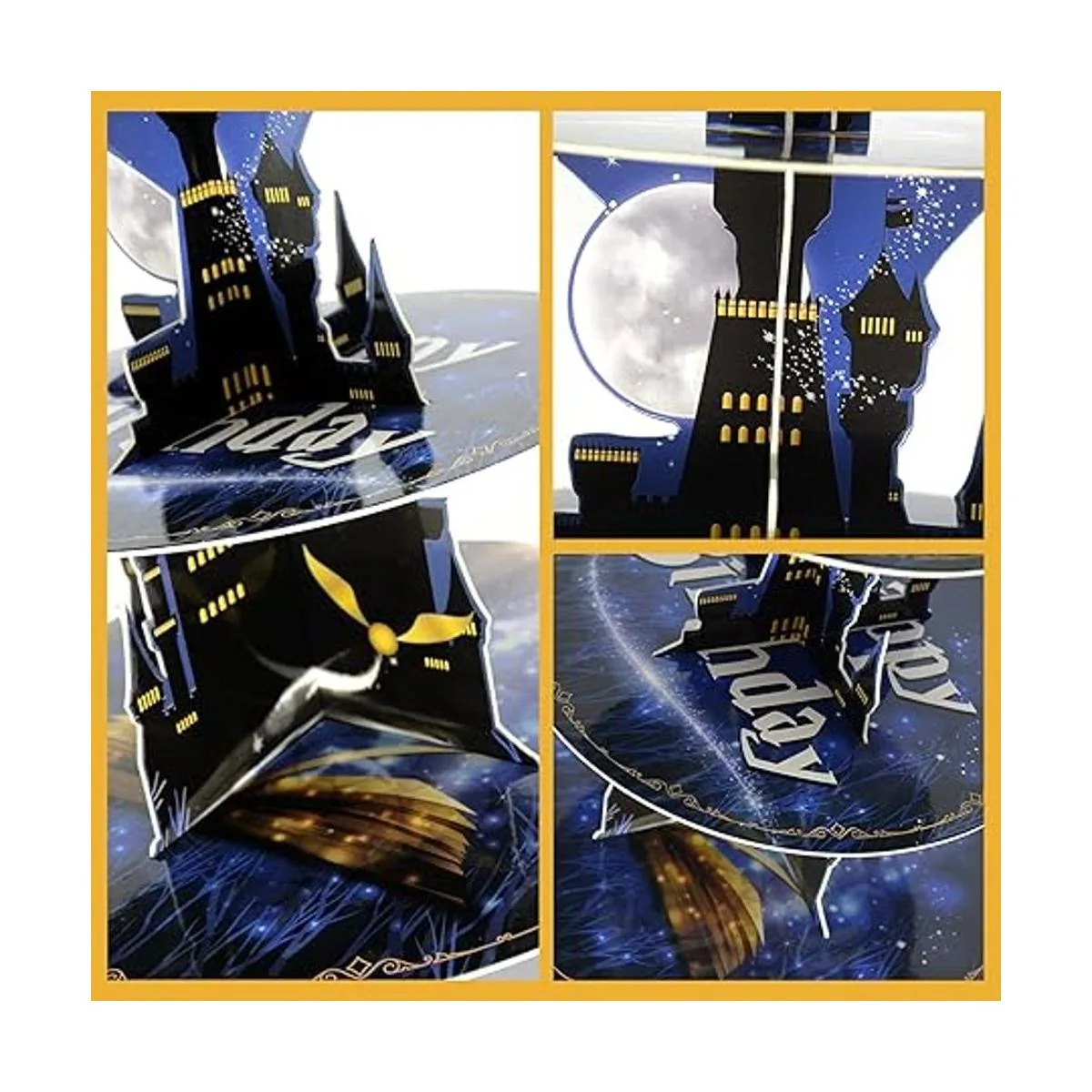 Duradero: el estante para tartas con temática de escuela de magos está hecho de cartón de alta calidad y no se dobla ni se rompe fácilmente. Crea una estructura estable de tres capas, para que el marco de la tarta se fije más estable, más duradero.