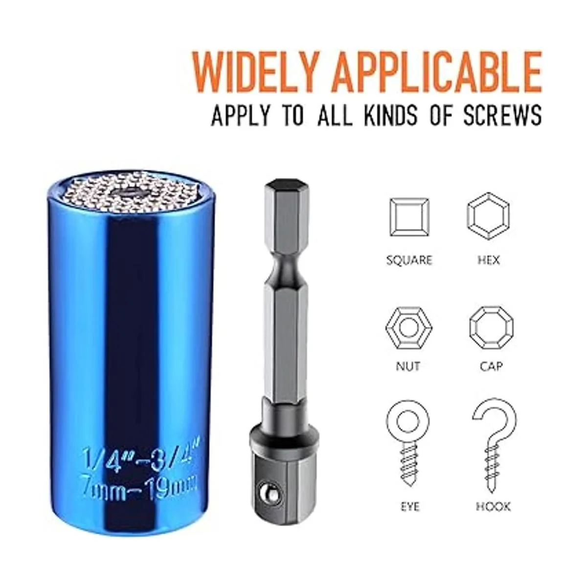 Uso Rango: para 1/4 pulgadas a 3/4 pulgadas / 2 estándar y métricas 0.27 0.74 pulgadas tuercas y pernos cabezas, la plaza tamaño de orificio en la parte posterior del enchufe universal es 3/8 pulgadas.