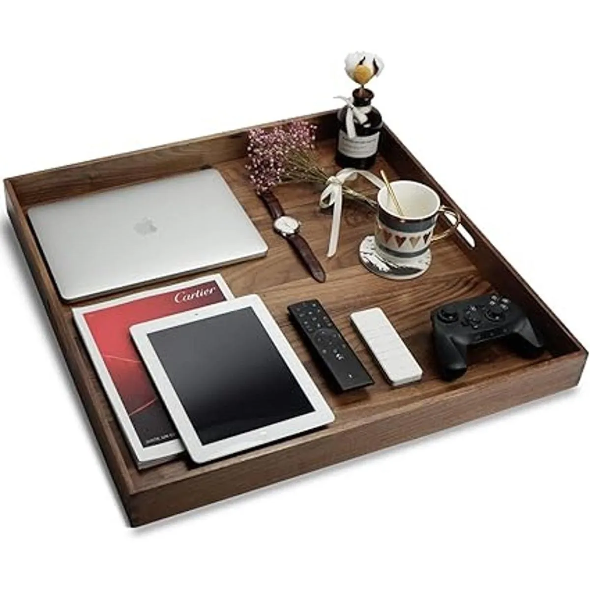 La bandeja cuadrada de gran tamaño es más grande que otras bandejas de madera en , son bandejas de madera maciza y pesada que no se desliza en tu otomana o mesa.
