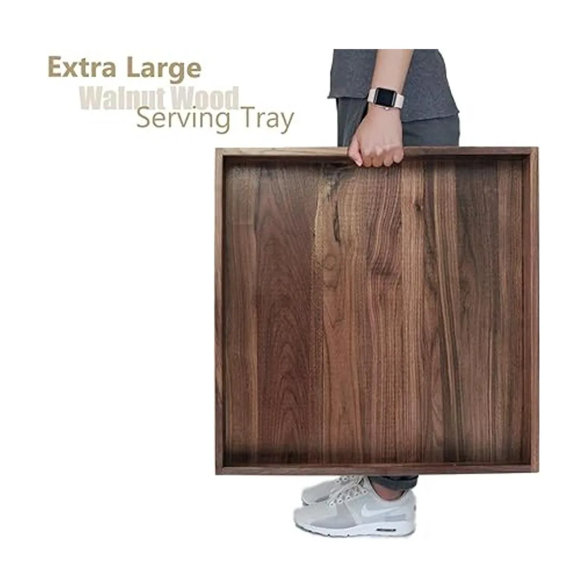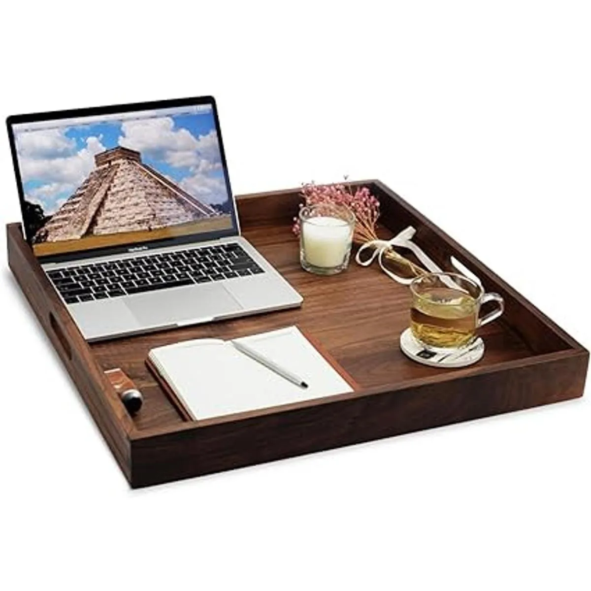 MAGIGO Bandeja otomana cuadrada grande de madera de nogal negro de 22 x 22 pulgadas con asas, sirve té, café o desayuno en la cama, bandeja decorativa de madera clásica