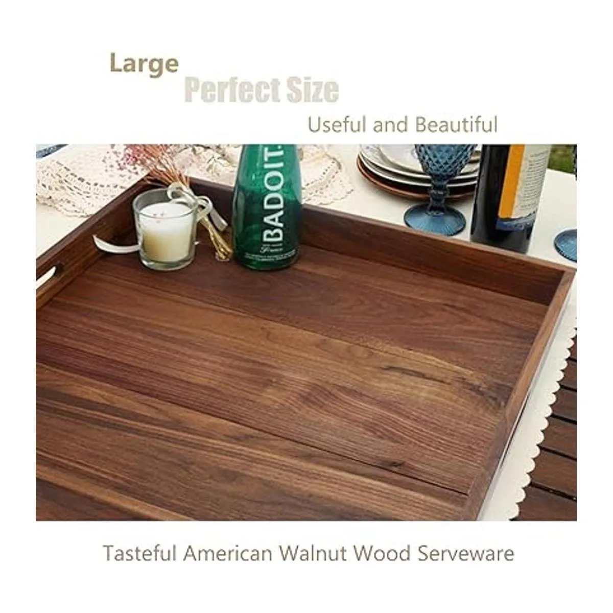 Bandeja clásica y vintage de nogal para servir de gran tamaño, diseño simple y elegante con asas en ambos lados. Después de la producción, la bandeja tiene doble acabado con dos capas de aceite de cera de madera natural apto para alimentos, cuenta con un rico acabado oscuro natural; añade un toque de lujo a cualquier cocina, comedor o sala de estar. Puedes llevar la bandeja de la encimera a la sala de estar, desde la cocina hasta el dormitorio, la oficina hasta el patio al aire libre… en cualquier lugar que desees
