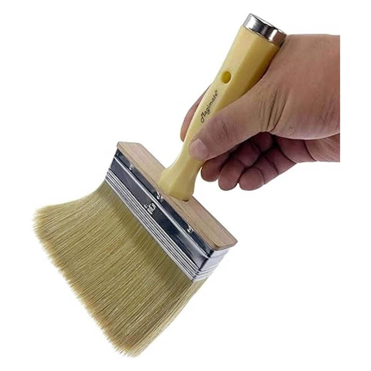 Magimate Cepillo de cubierta para aplicar manchas, pincel de pintura de 5 pulgadas, tamaño mediano para aplicación rápida de pintura, valla, paredes y muebles, mango roscado para uso en extensión