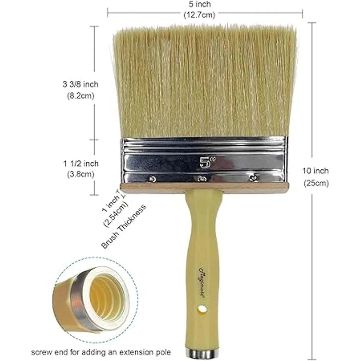 Especificaciones del cepillo: 5 pulgadas de ancho x 1 pulgada de grosor, filamento sintético suave mezclado con cerdas naturales. Sujeta más manchas/sellador y pintura suavemente, haciendo que tu trabajo de mejora del hogar sea muy fácil.