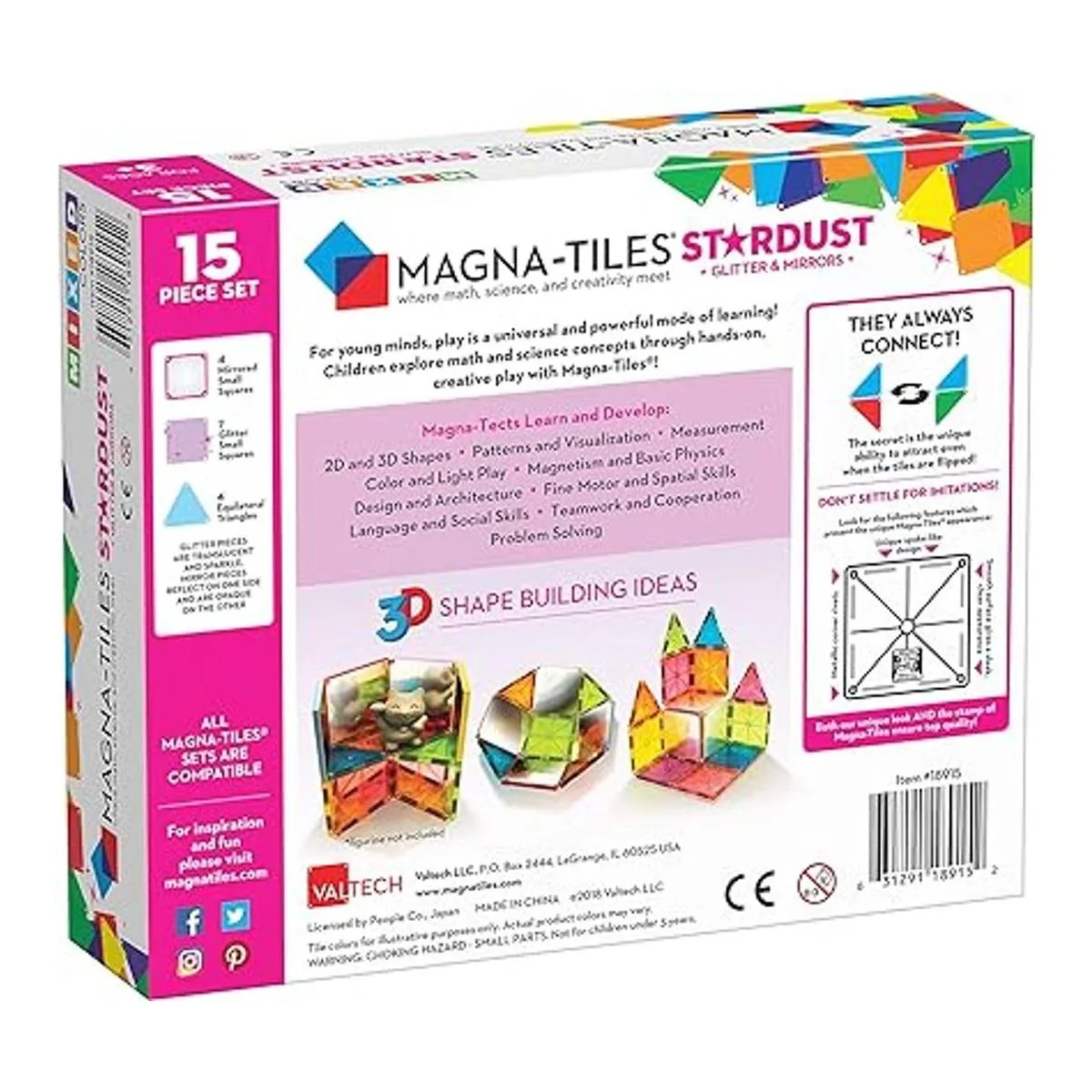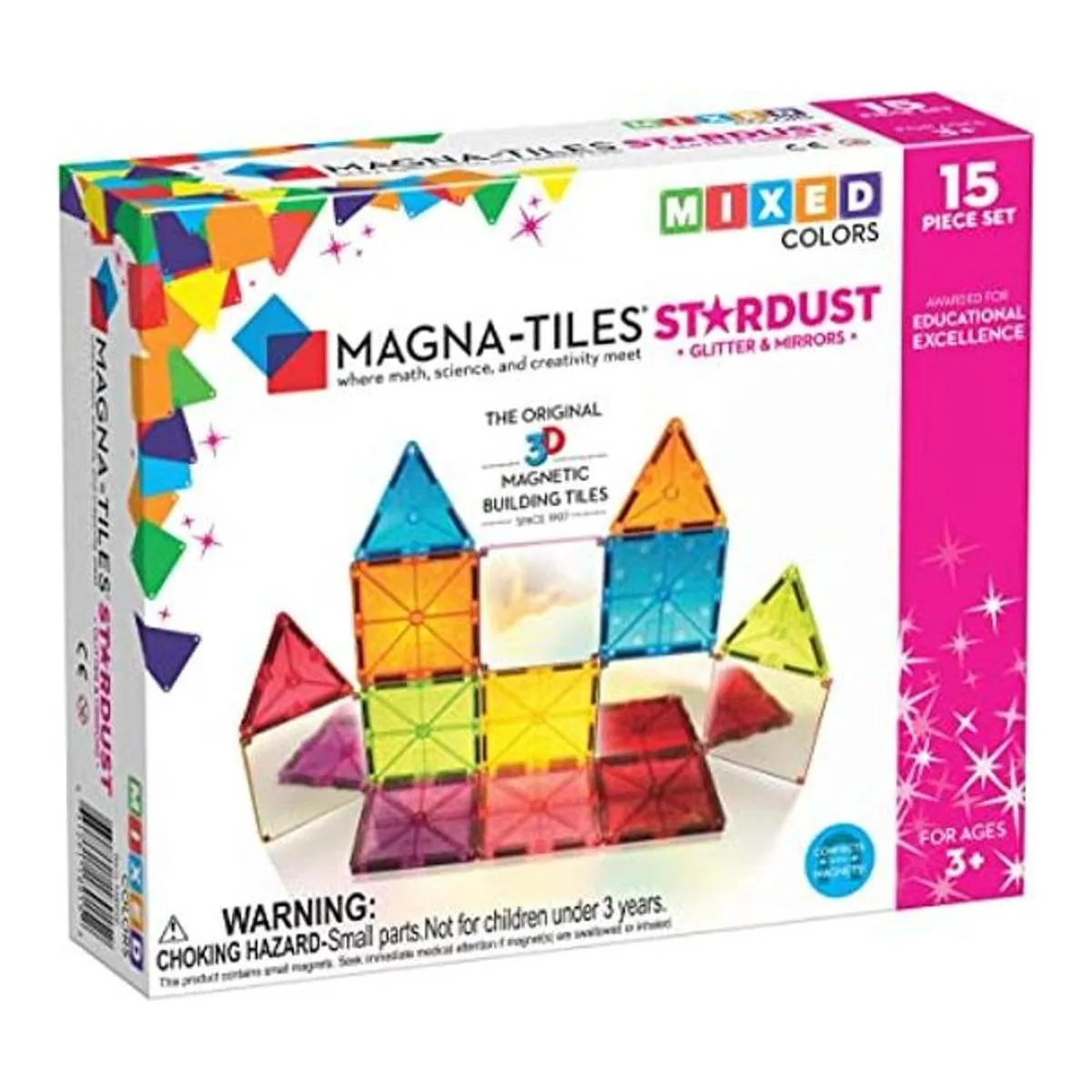 MAGNA Juego de azulejos de construcción magnéticos originales para juego creativo de extremo abierto, juguetes educativos para niños a partir de 3 años 15 piezas incluyendo purpurina y espejos
