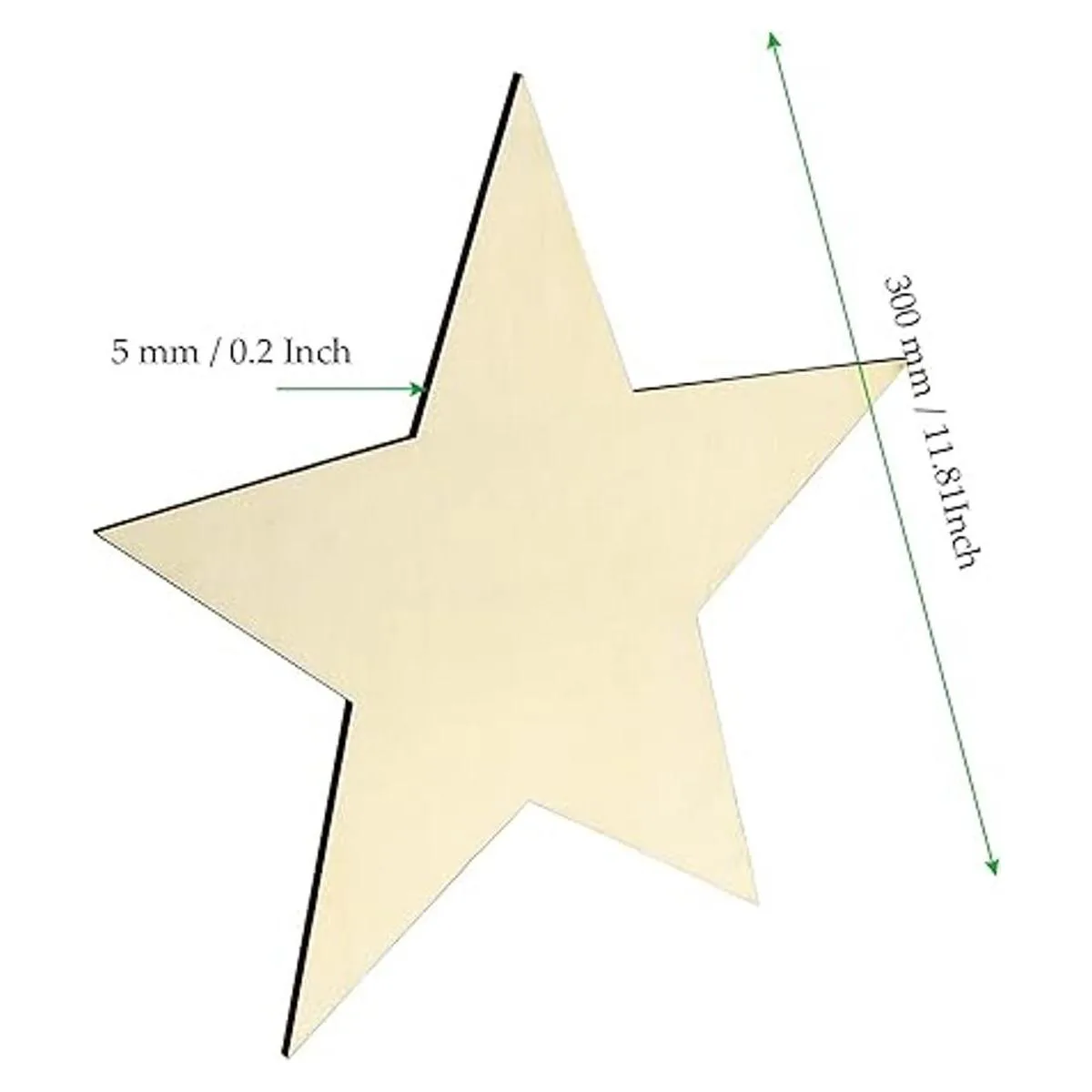 Tamaño grande: puedes obtener un total de 6 estrellas de madera sin acabar, cada una con una longitud diagonal de 12 pulgadas y un grosor de 1/5 pulgadas. Hay suficientes números y un área lo suficientemente grande como para permitirte hacer varios proyectos.