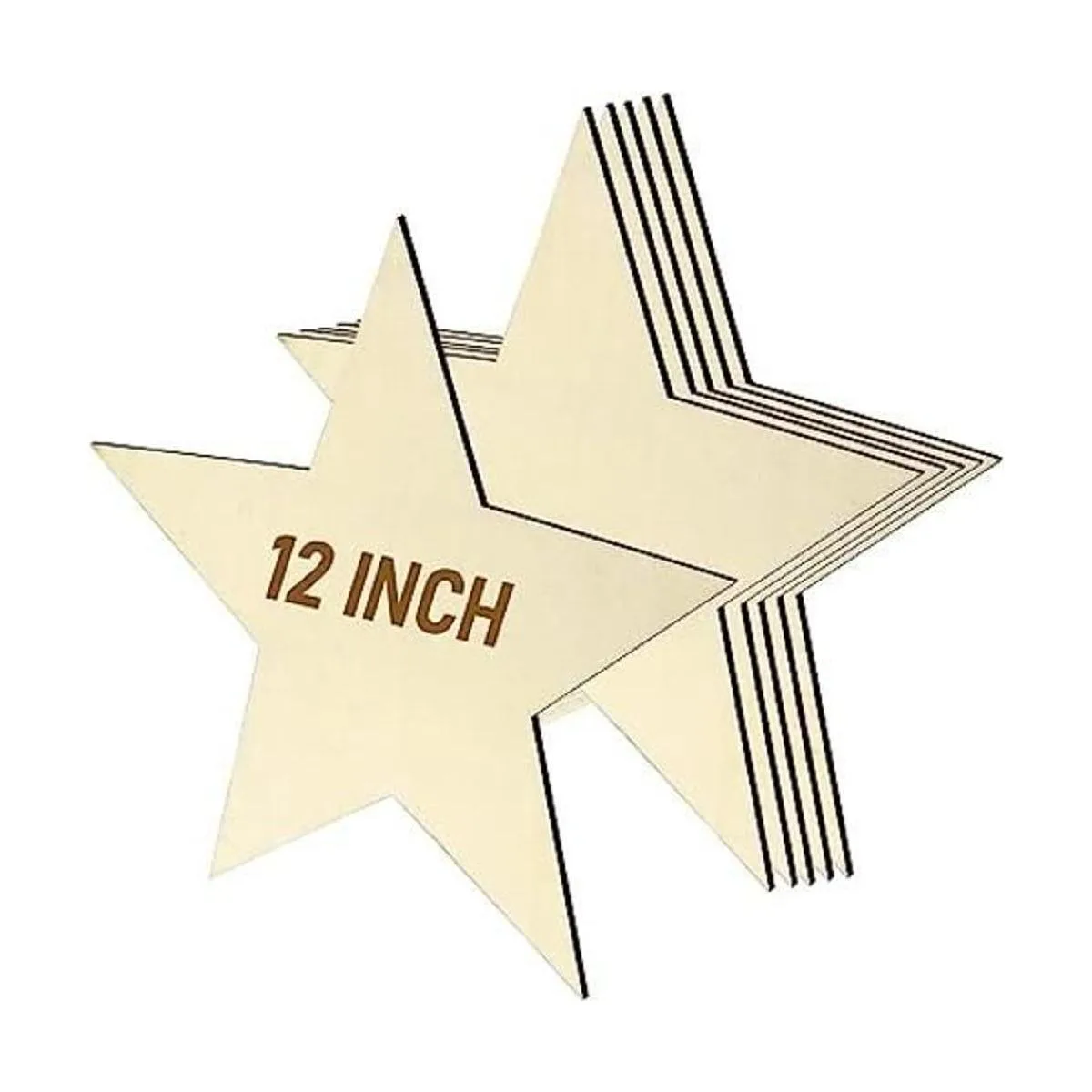 MAHIONG Paquete de 6 formas de estrella de madera de 12 pulgadas, grandes recortes de estrella de madera patriótica a granel, piezas de madera en blanco sin terminar para manualidades, bricolaje, decoración de boda, regalos de Navidad