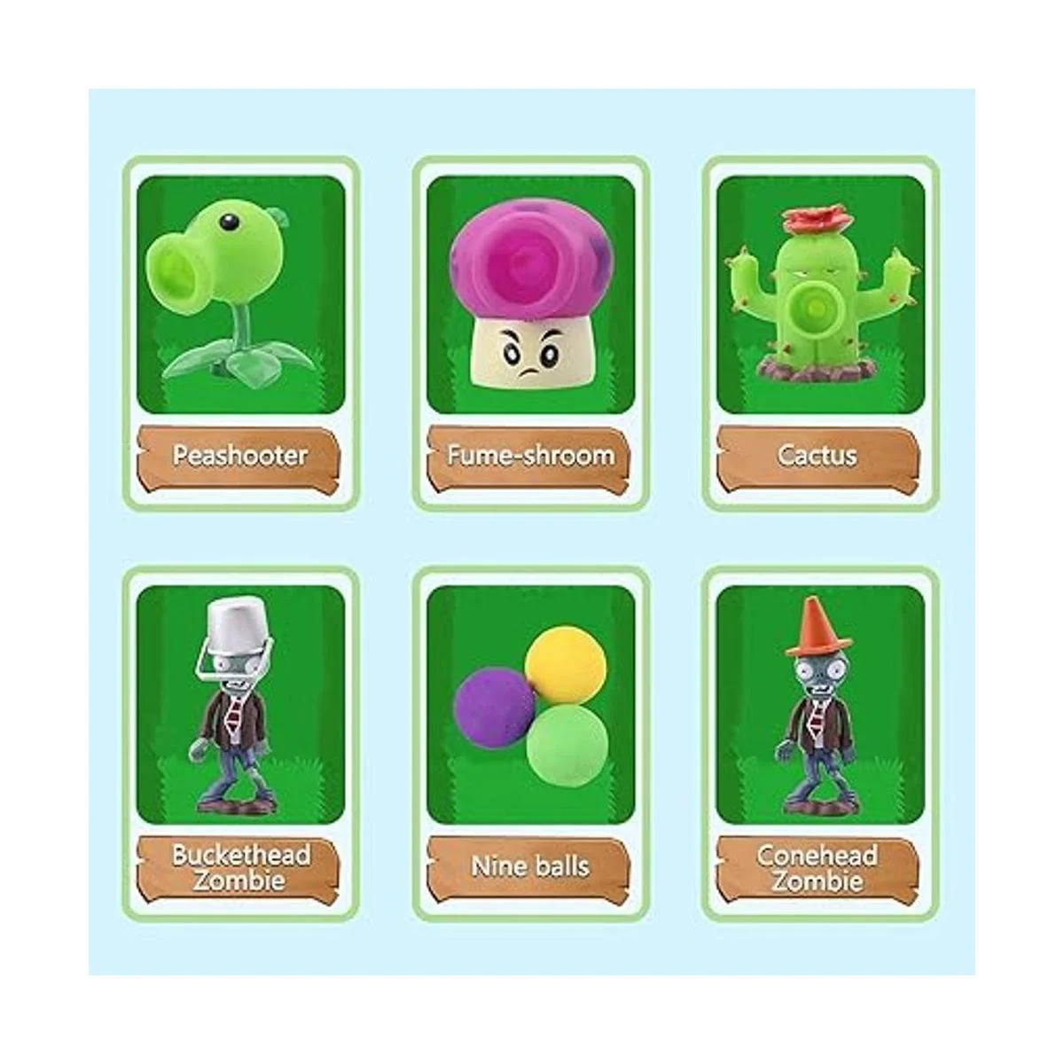 Paquete de 5 juguetes y 9 bolas de EVA. : Nuestro juego de juguetes de plantas y zombies incluye 3 plantas y 2 zombies, son un Peashooter, un FumeShroom, un Cactus, un zombi Buckethead y un zombi. El color de la bola es aleatorio.