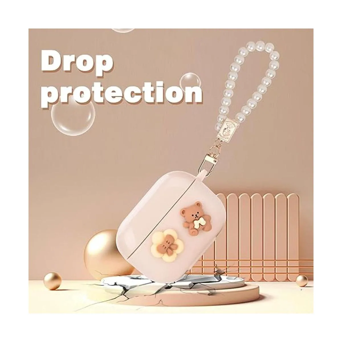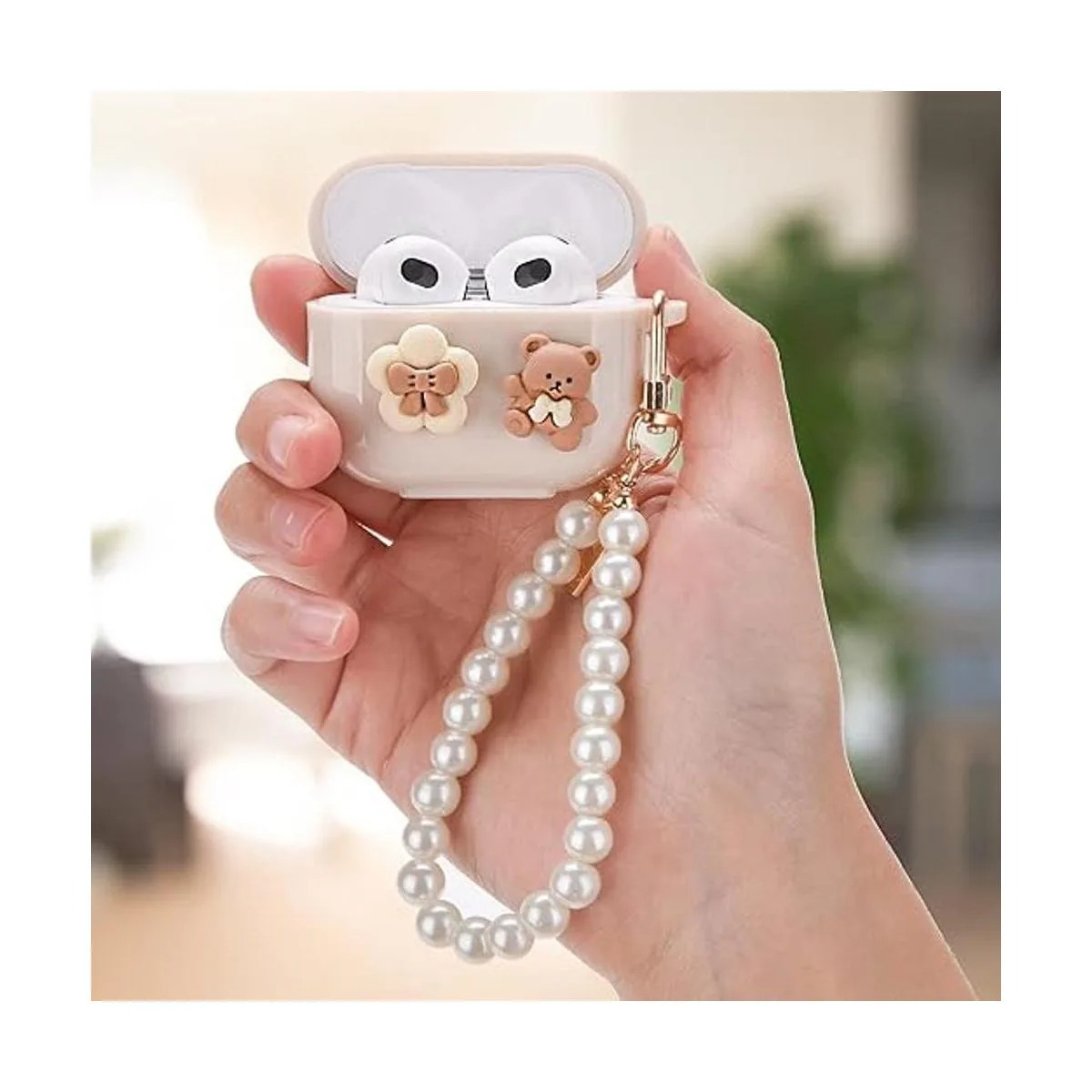 Mainrenka Linda funda Kawaii AirPod de 3 generación para mujeres y niñas, funda estética AirPods 3 2021 con llavero de perlas