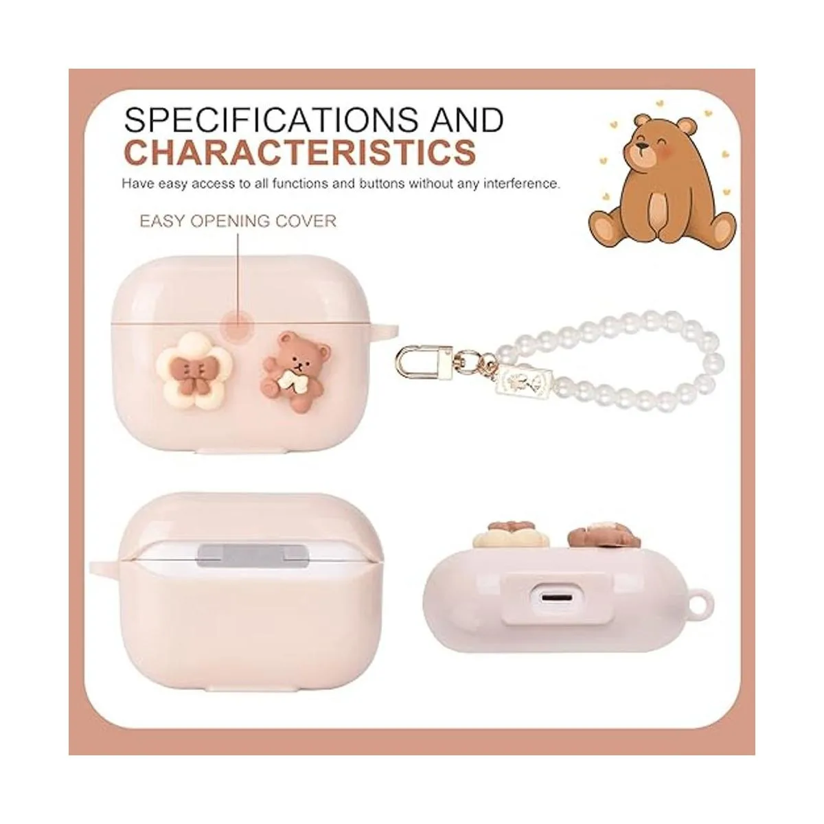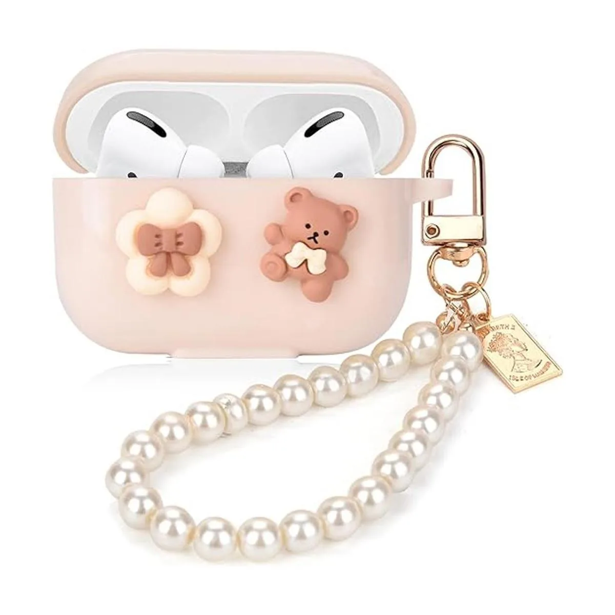 Mainrenka Linda funda kawaii para AirPods Pro para mujeres y niñas, funda estética para Airpod Pro con cadena de perlas, funda protectora suave y suave