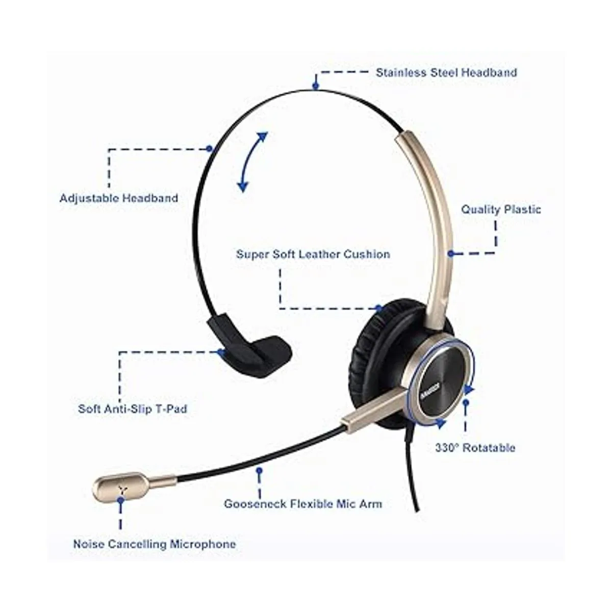 Sonido de alta calidad: auriculares de teléfono con micrófono con cancelación de ruido y sonido de audio HD que garantizan una comunicación fácil y clara para centros de llamadas, oficinas y teléfonos domésticos incluso en entornos ruidosos. La solución de audio de banda ancha ofrece una audición natural y clara. Antichoque acústico para protección auditiva.
