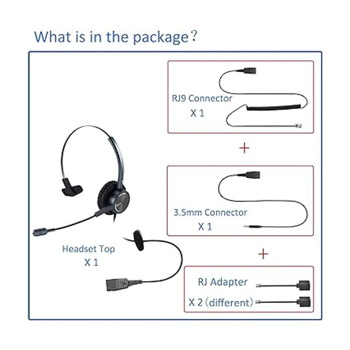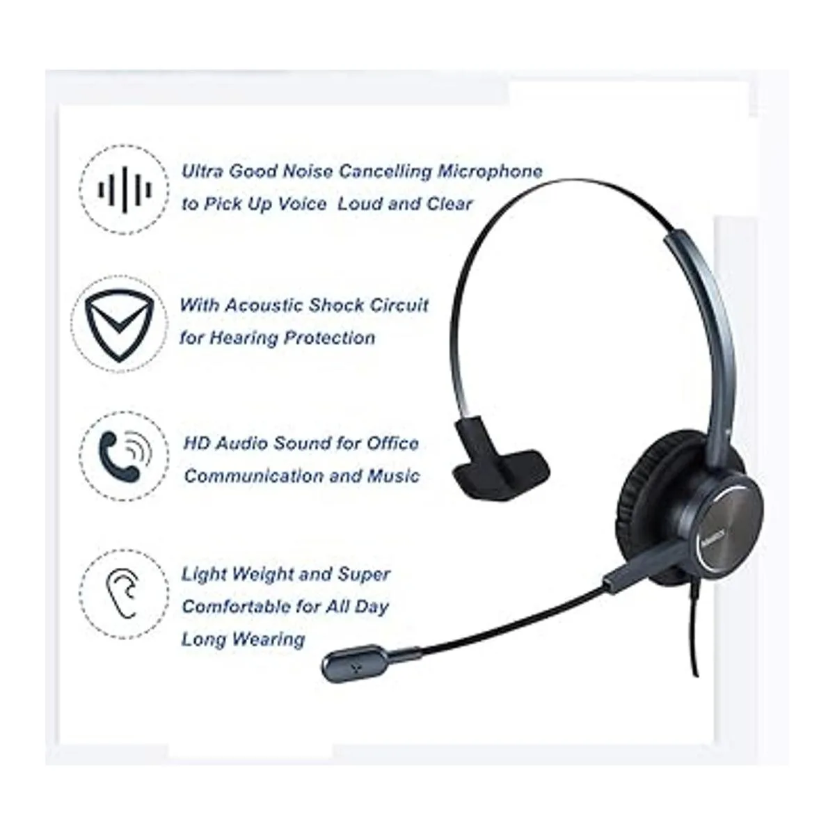 MAIRDI Auriculares de teléfono con micrófono con cancelación de ruido, monoaurales con conector RJ9 y conector de 0.138 in para oficina, centro de llamadas, escritorio, teléfono celular y laptop, funciona para Cisco 7941 7965 6941 7861 8961