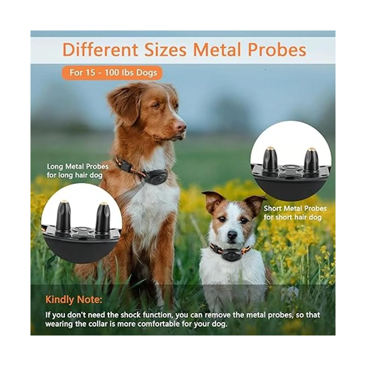 Sondas de metal extraíbles: este collar de choque viene con 2 pares de sondas de metal en diferentes tamaños, por lo que puedes elegir el más adecuado de acuerdo con el grosor del pelo de tu mascota. Sondas de metal largas para perros de pelo largo y sondas de metal cortas para perros de pelo corto. Nota: Si no necesitas la función de choque, puedes quitar las sondas de metal, para que llevar el collar de perro sea más cómodo para tu perro.