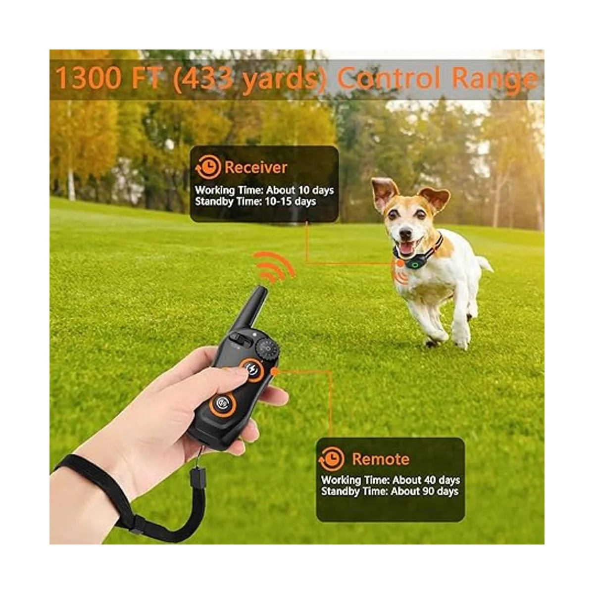 Rango remoto de 1300 pies y mayor duración de la batería: este collar de choque para perro con rango remoto de hasta 1300 pies, puedes entrenar a tu perro fácilmente en el patio, parque, playa o en cualquier otro lugar. El control remoto recargable y el receptor tardan de 2 a 3 horas en cargarse completamente. El receptor puede durar unos 10 días en tiempo de trabajo y 1015 días en tiempo de espera, y el control remoto puede durar unos 40 días en tiempo de trabajo y unos 90 días en tiempo de espera.