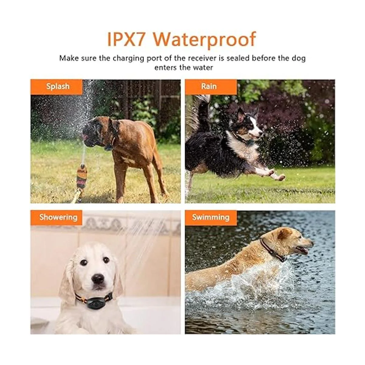 Receptor impermeable y collar ajustable: la correa del collar de choque para perro se puede ajustar de 9 a 26 pulgadas, adecuado para perros pequeños, medianos y grandes, perros de 15 a 100 libras. Y cuando tu perro va a nadar, ducharse o jugar bajo la lluvia, no necesitas quitar este receptor impermeable. Nota: el mando a distancia no es impermeable. Asegúrate de que el puerto de carga del receptor esté completamente cerrado al agua.