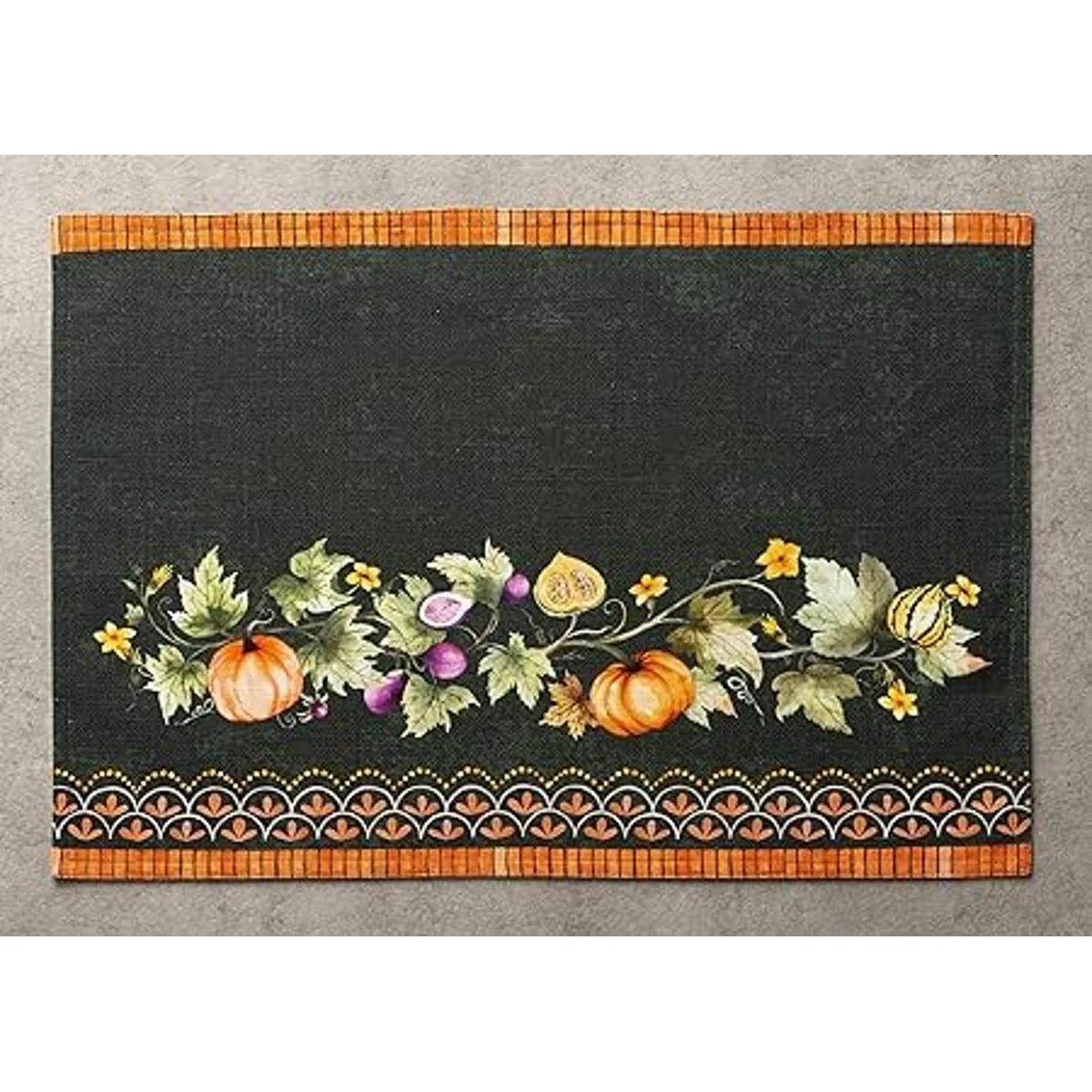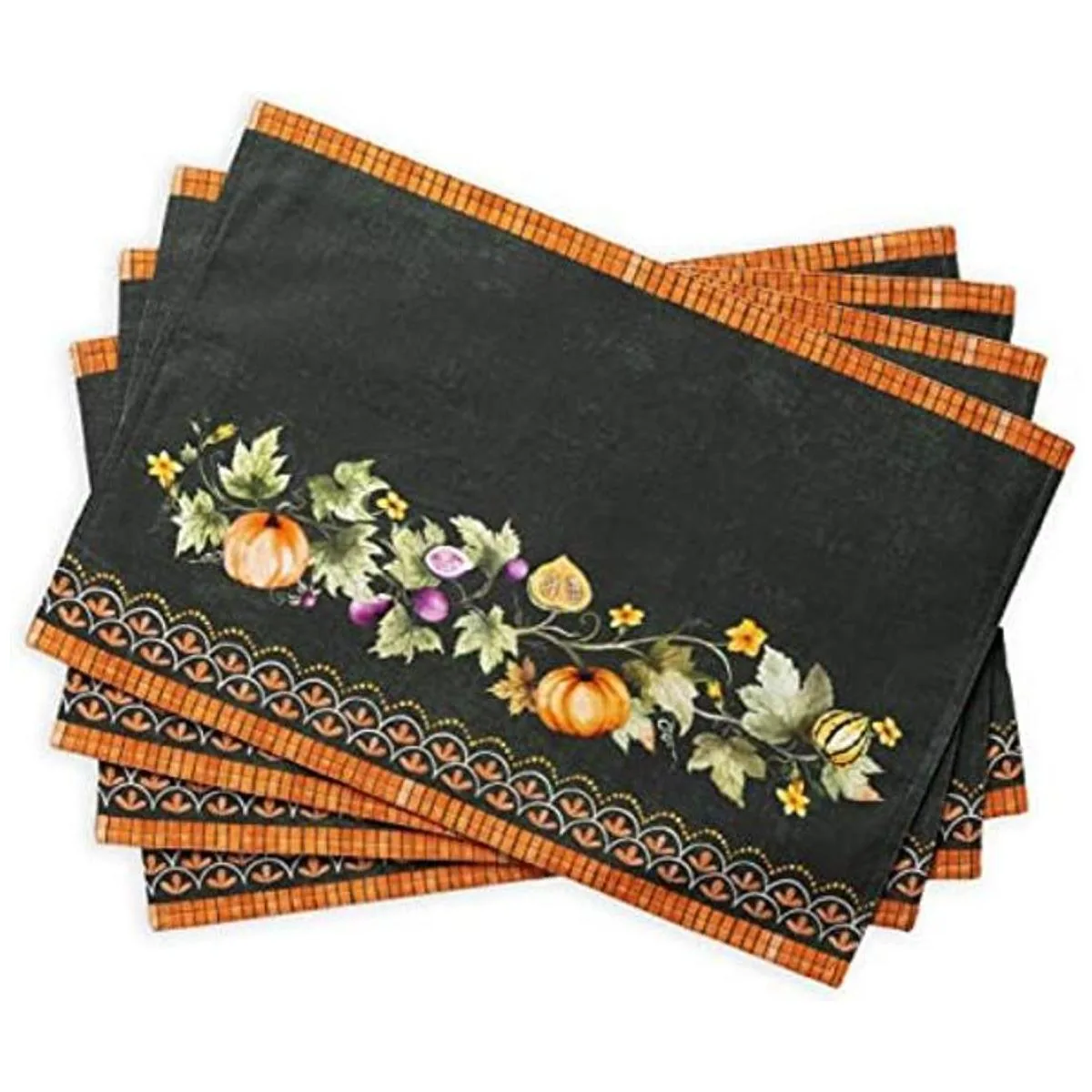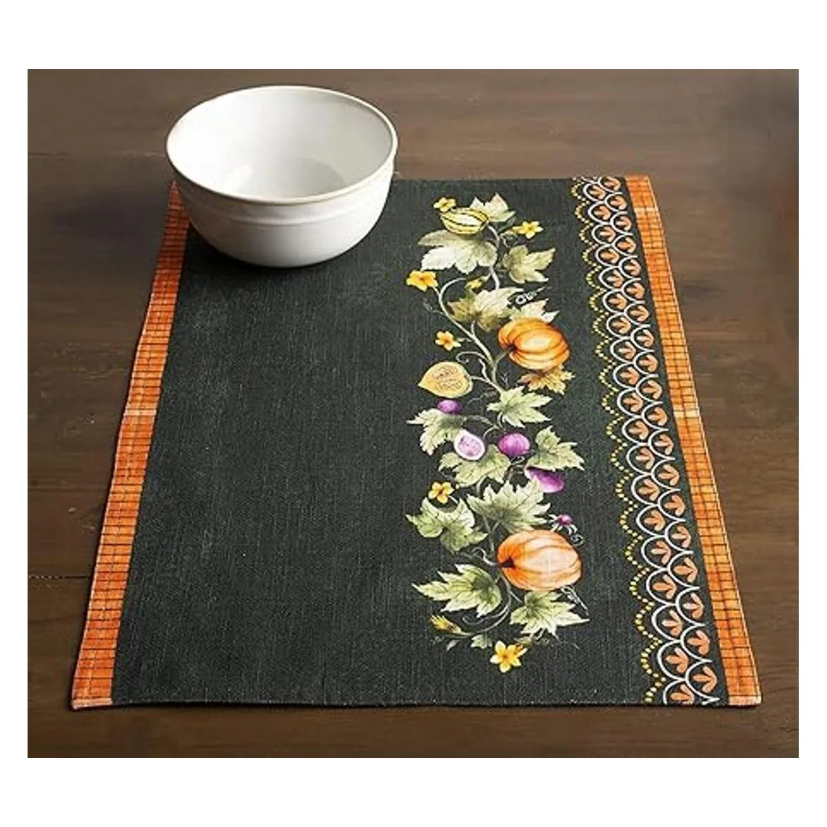 Maison d Hermine Pumpkin Garden Juego de 4 manteles individuales 100 algodón para mesa de comedor, cocina, boda, uso diario, cenas, fiestas, otoñoinvierno verde oscuro, 13 x 19 pulgadas