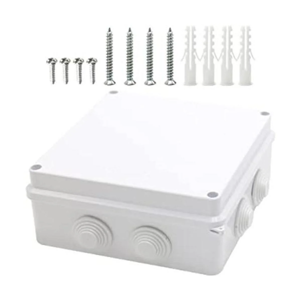 3. Contenido del paquete: 1 caja de conexiones impermeable, 4 tornillos, 4 pernos de expansión