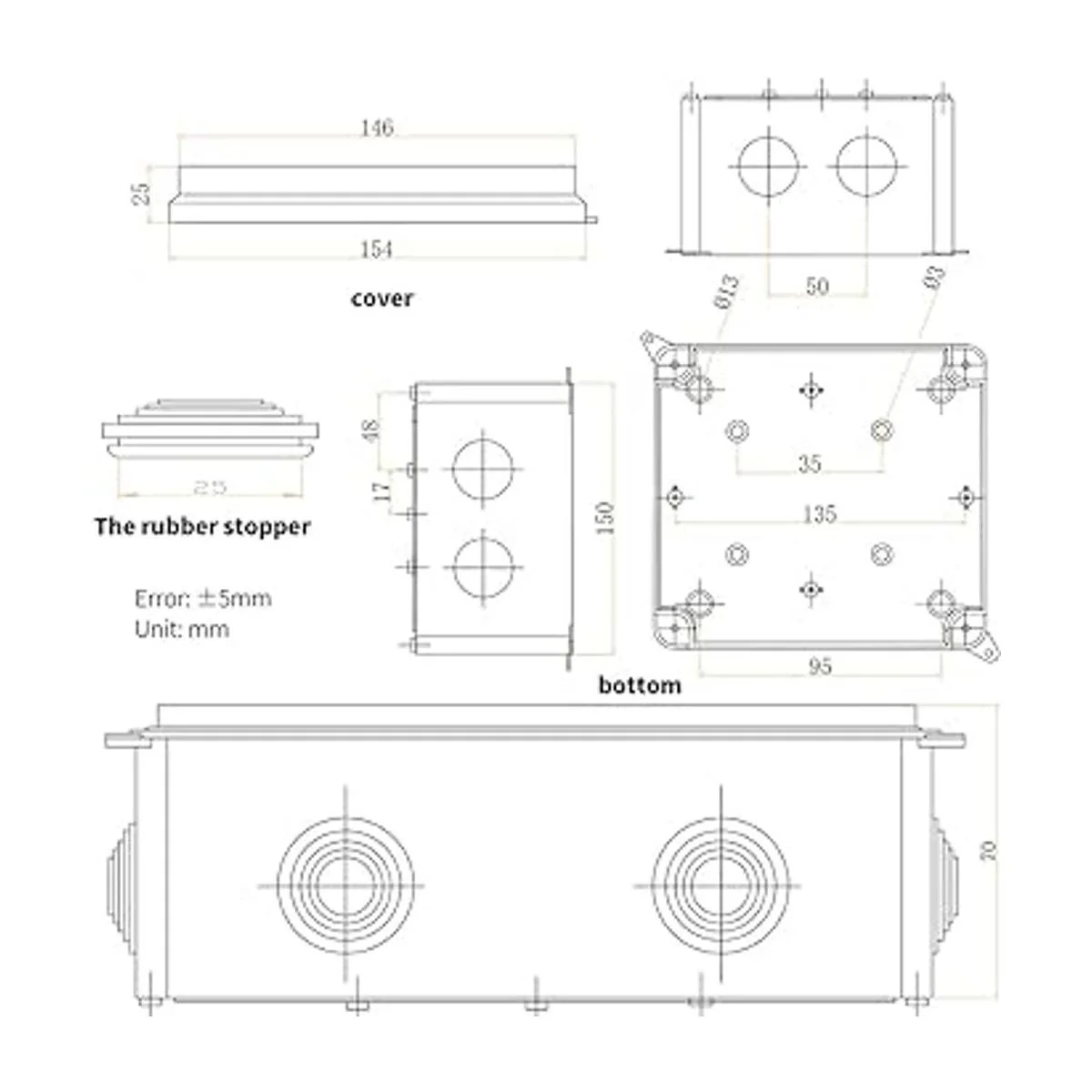 1. Nombre del producto: caja de conexiones. Clasificación impermeable: IP65. Calificación: CE, ROHS