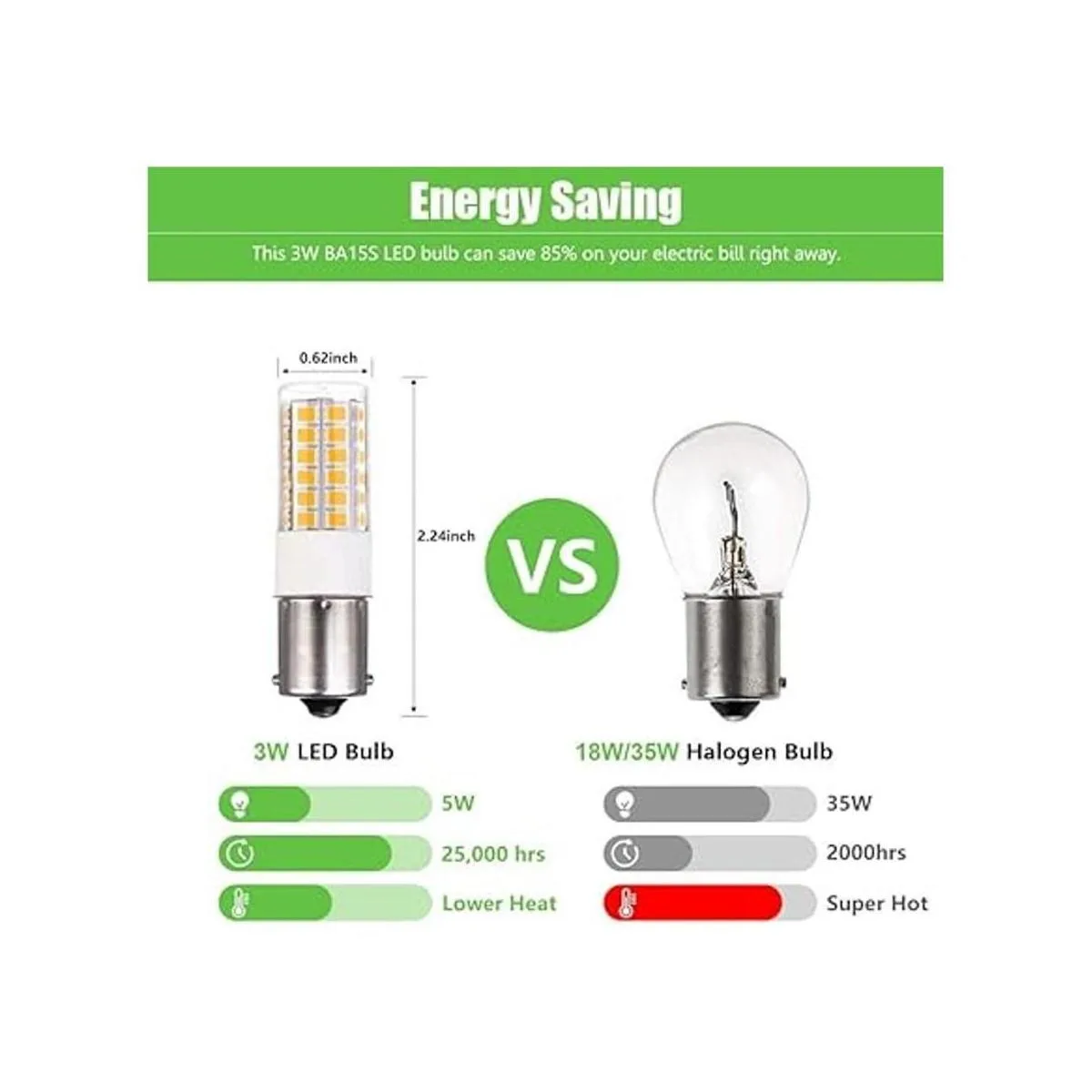 Bombillas LED de alta eficiencia 1156 1141 S8 para paisaje. 400 lúmenes de salida en 3 W. Equivale a bombillas halógenas incandescentes de bayoneta en forma de 18 W35 W 12 V S8, lo que haría una gran mejora de tu iluminación y ahorraría más del 85 en tus costos de iluminación.
