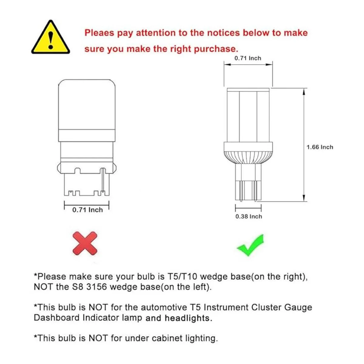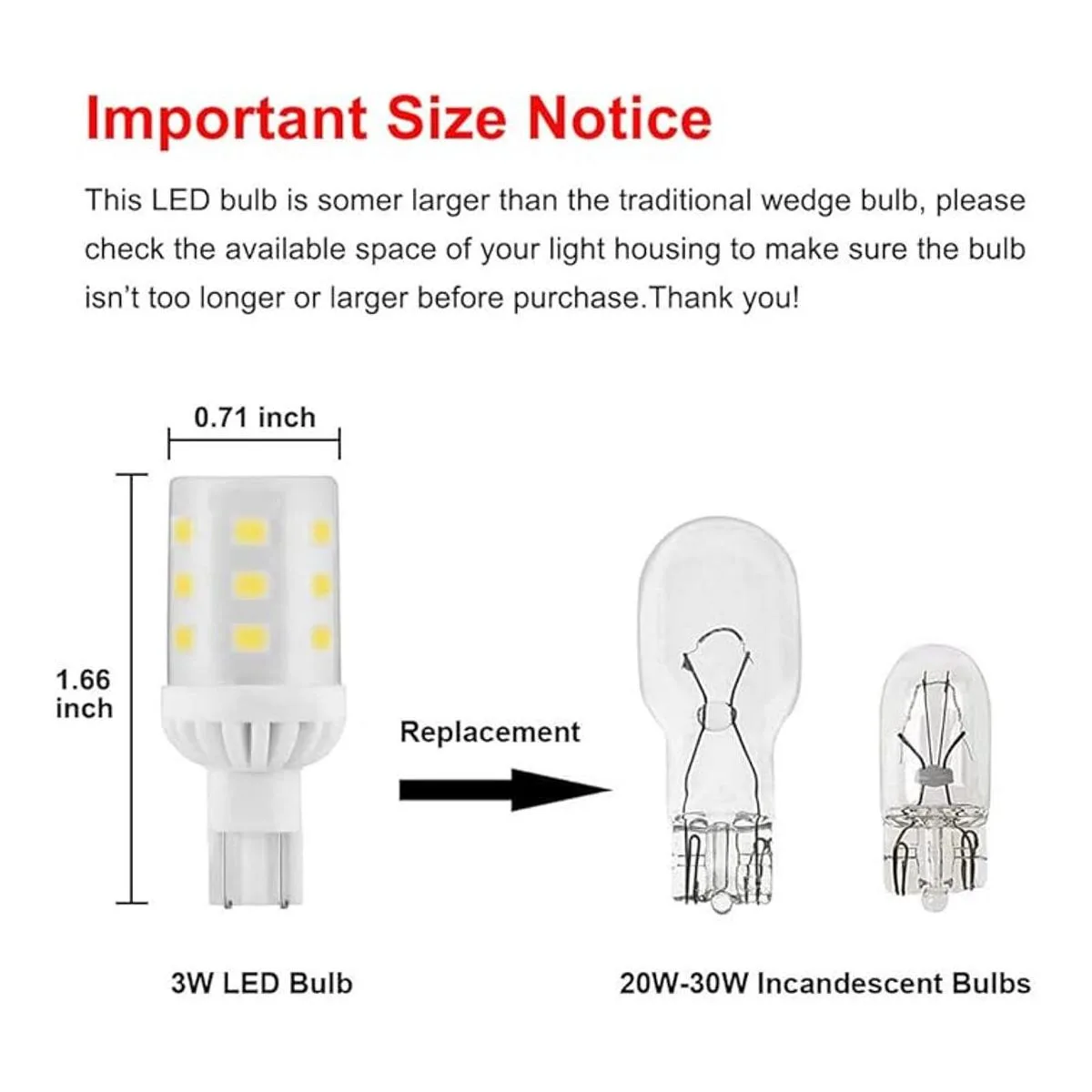 Fácil instalación Plug and Play. Nota: comprueba las medidas antes de comprar. La bombilla LED es un poco más larga que algunas bombillas tradicionales 921, 912, 904 y 194.