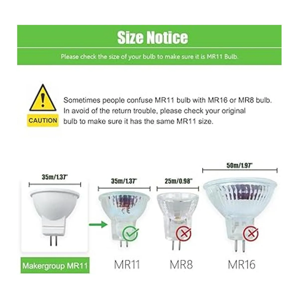Fácil instalación. Plug and Play. Tamaño estándar MR11 diámetro 1.378 in. Es fácil de colocar en los accesorios existentes. Si necesitas bombillas MR16 diámetro de 1.969 in, busca el ASIN: B07FTTTF6R