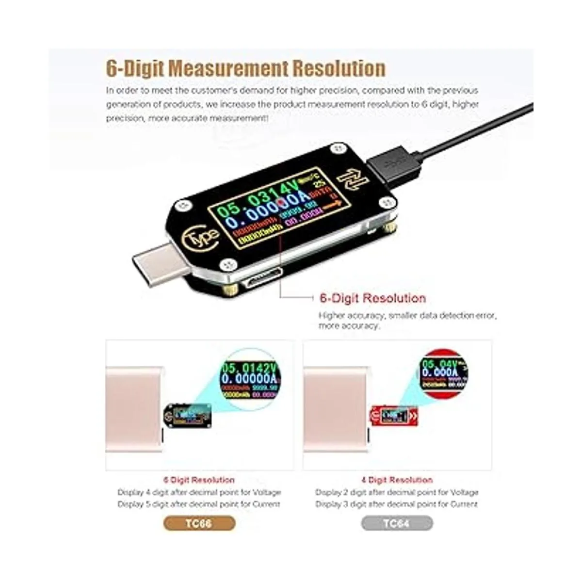 MakerHawk Medidor de potencia USB, Bluetooth USB, monitor de corriente y voltaje tipo C, probador de seguridad USB, medidor de capacidad de batería PD, multímetro digital LCD a color