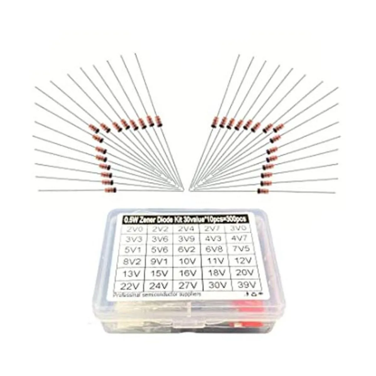 Juego de diodos Zener de 2 V a 39 V, 0,5 W, 30 valores, 10 unidades cada una, total 300 unidades