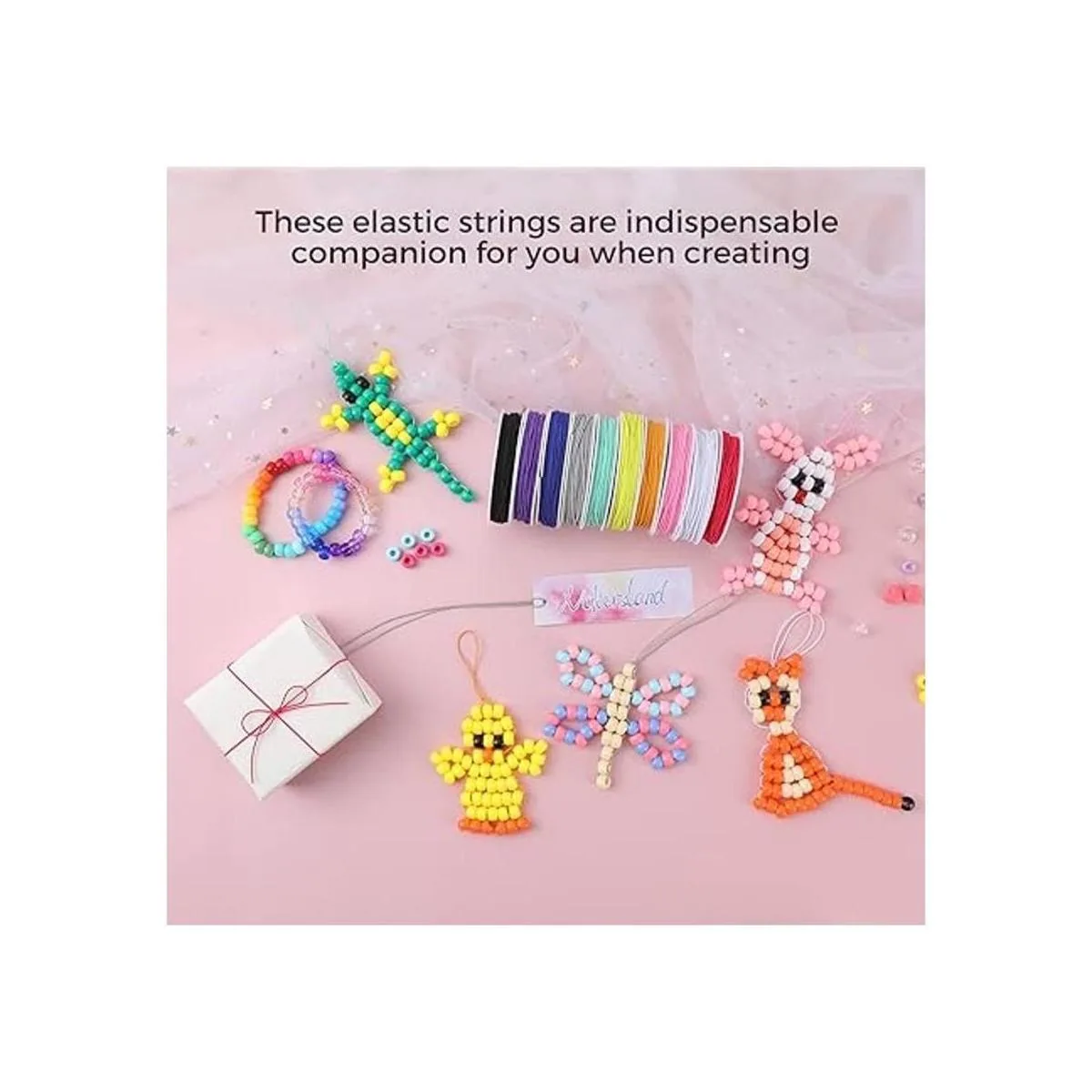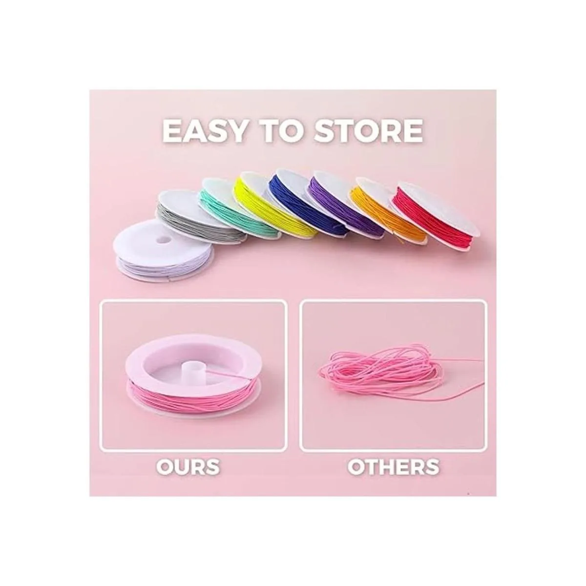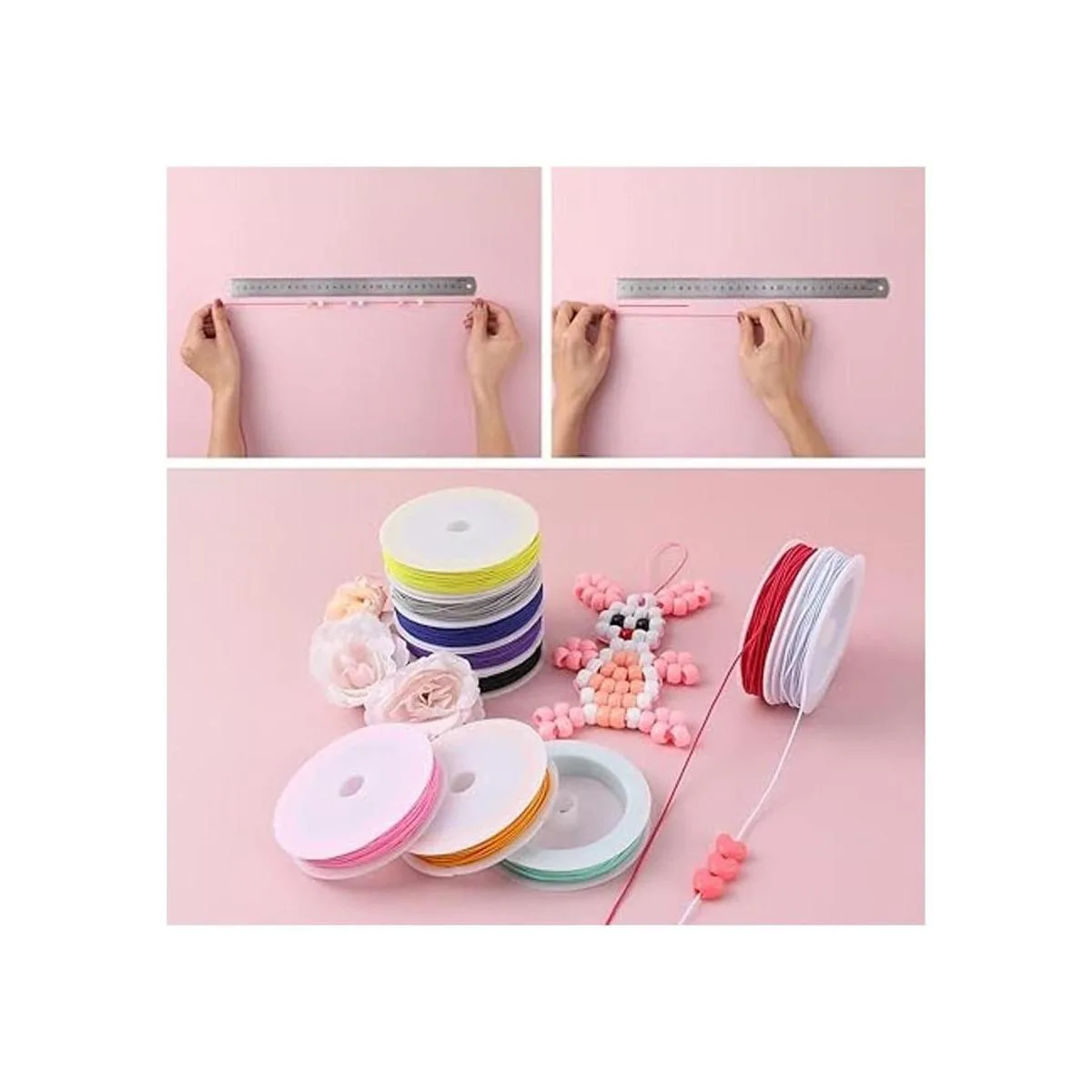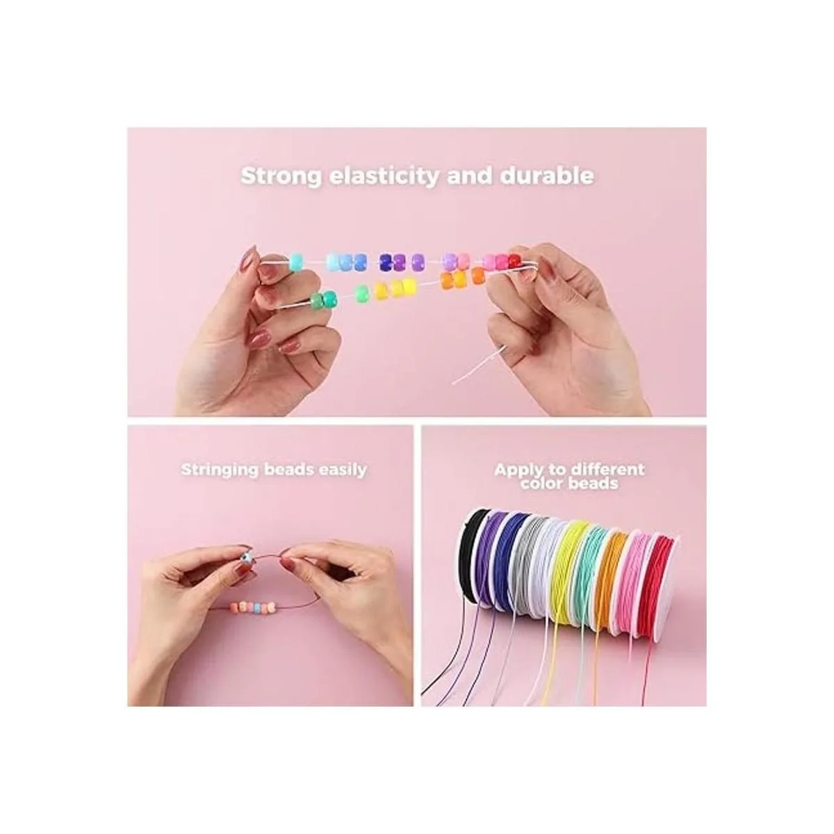 Fácil de cortar y atar: fuerte elasticidad y duradero, fácil de cortar y atar para hacer cuentas, se puede cortar a la longitud adecuada libremente como quieras, fácil de atar nudos.