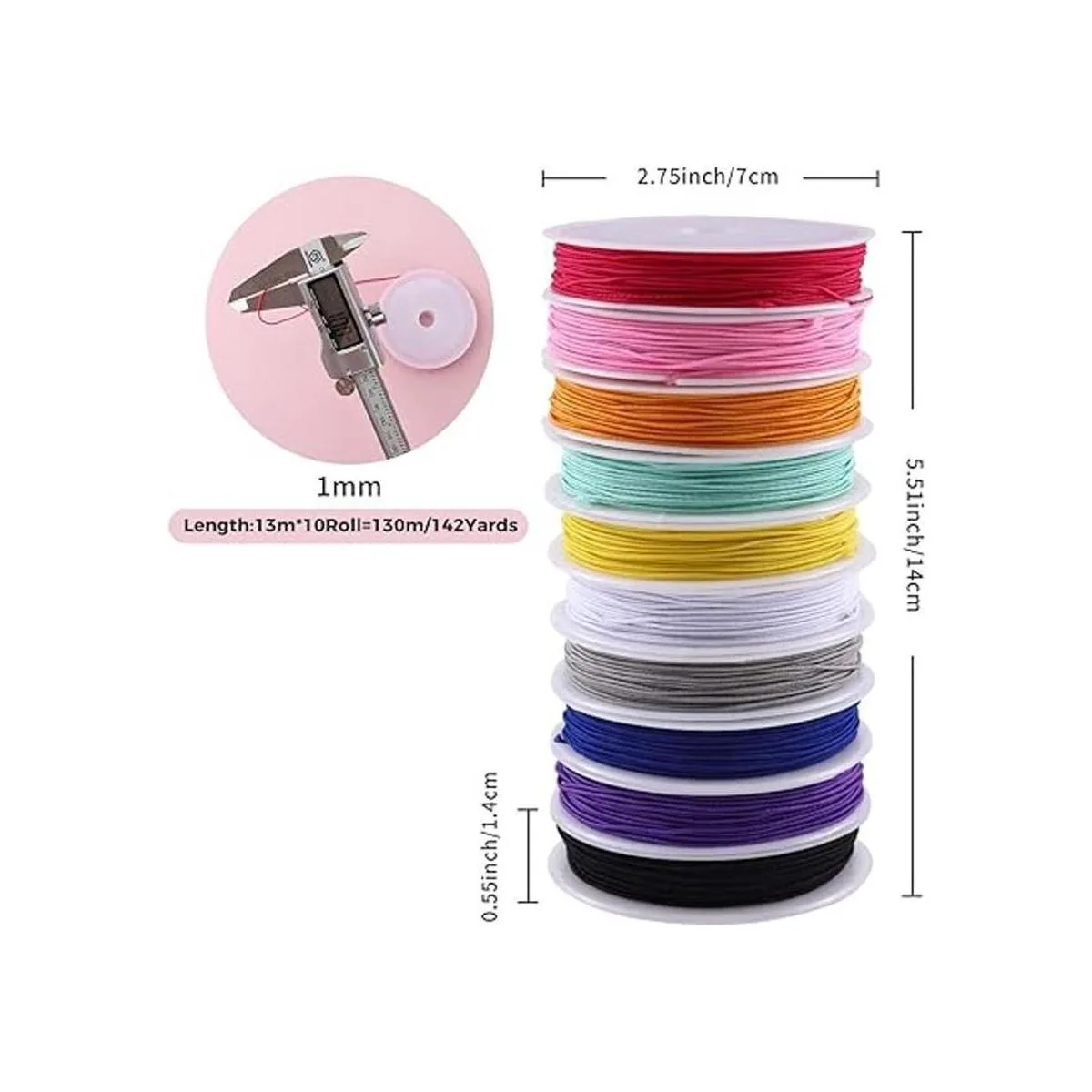 Tamaño perfecto: el cordón elástico de diámetro es de 0.039 in, es perfecto para cuentas de cuentas. 10 rollos de cuerda elástica de diferentes colores, 42.7 ft por rollo, total 426.5 ft, ideal para cualquier proyecto de manualidades. Viene con rollo de plástico, conveniente para envolver el cable alrededor de él.