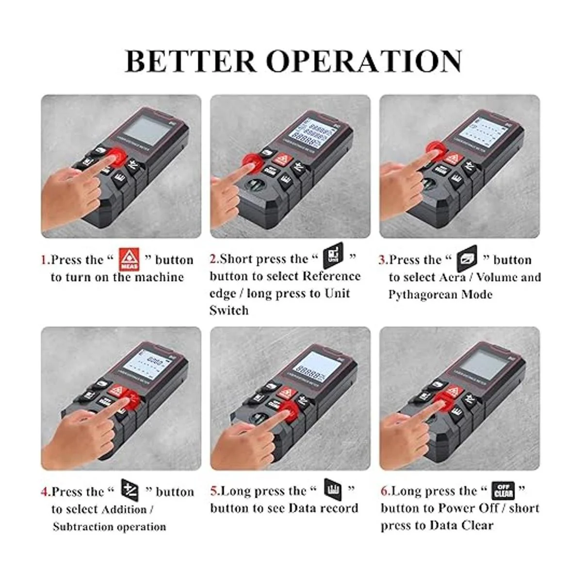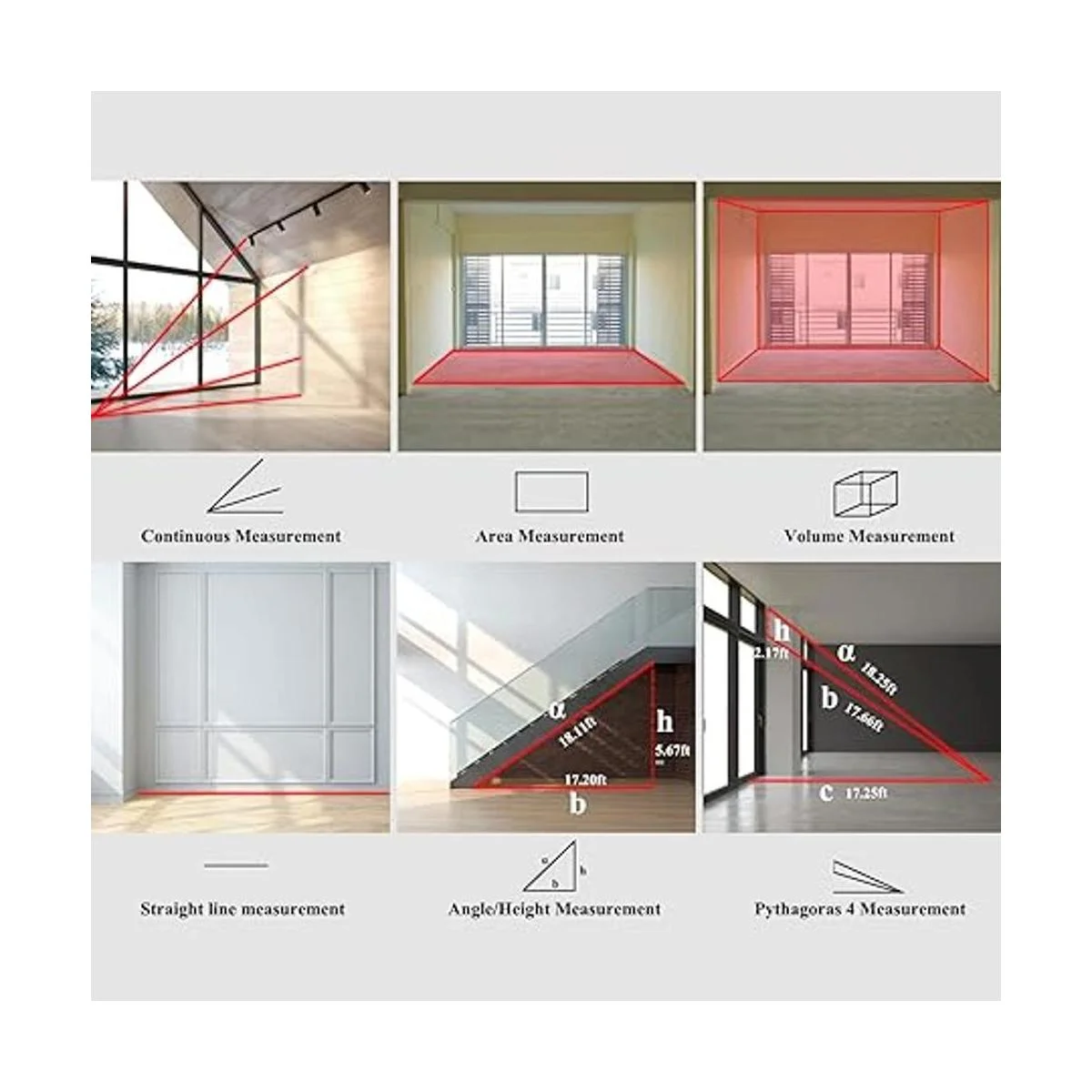 Amplia aplicación: la cinta láser quizás se piensa con mayor frecuencia como una herramienta de contratista, también son valiosas para arquitectos, inmobiliarios y aficionados al bricolaje, construcción e industrias, apartamentos, edificios, bienes inmobiliarios, fábricas, almacenes, etc.