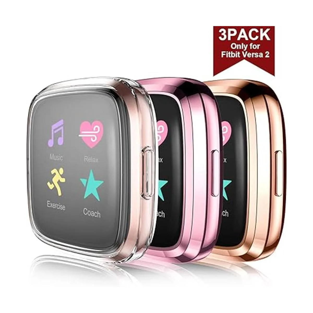 Maledan Funda protectora de pantalla completa ultrafina, de TPU HD, para Fitbit Versa 2, resistente a los arañazos, con absorción de golpes, accesorios de correas de reloj inteligente paquete de 3