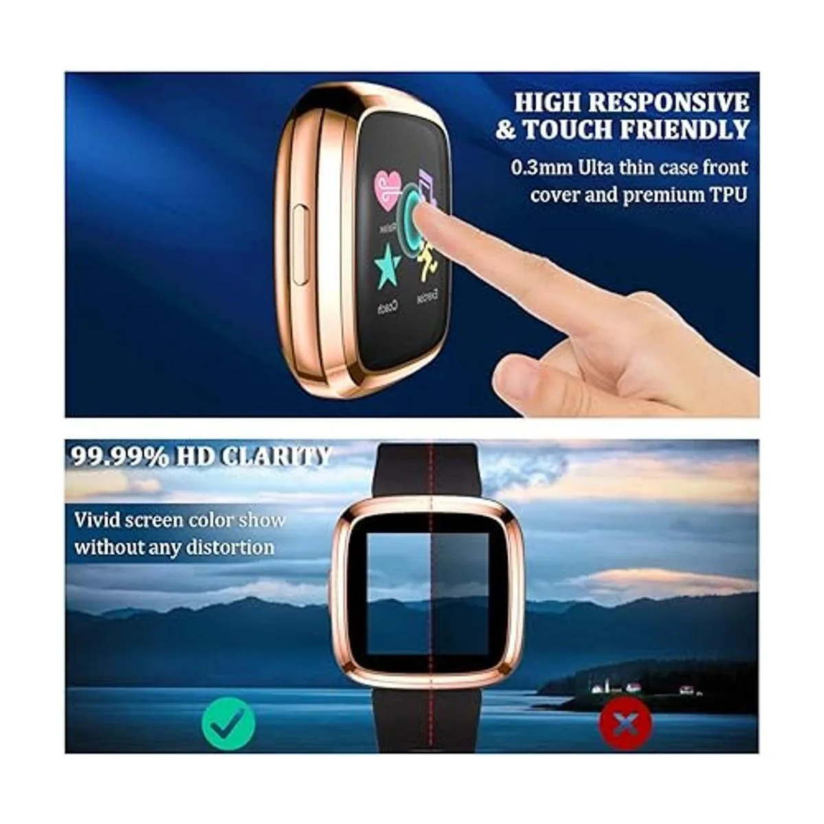 Funda protectora de pantalla sensible: innovadora pantalla táctil sensible y 99.99 de claridad HD, con cero impacto para uso diario en tu reloj Versa 2. Esta funda es compatible con Fitbit Versa 2/Versa 2 Special Edition Solo la funda. No es compatible con Fitbit Versa 1/Versa Lite SE