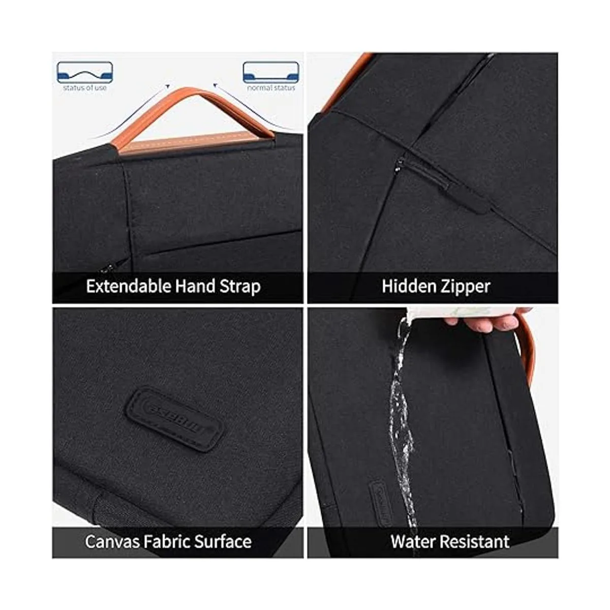 Repelente al agua y a prueba de humedad: hecho de tela de lona de nailon impermeable, que obstruye el agua y el vapor de manera eficaz. No te preocupes por que tu computadora portátil y accesorios se mojen de salpicaduras de agua o lluvia