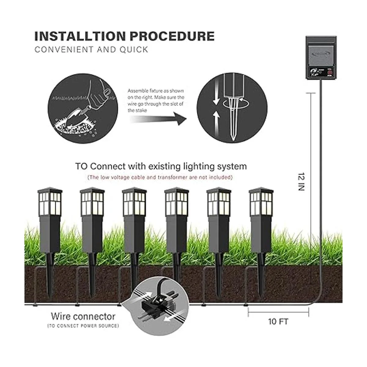 Esta luz de paisaje de bajo voltaje de 22 lúmenes, 0,6 W utiliza menos consumo de energía y mejora el brillo. La luz contiene una amplia gama de colores de 3200 K. Esta luz puede iluminar un patio para crear un ambiente brillante y limpio