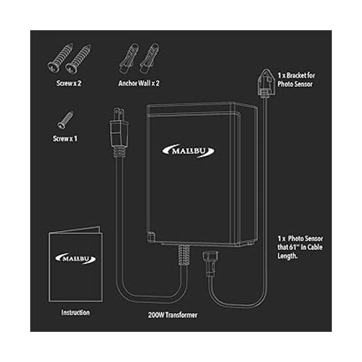 Malibu Paquete de energía de 200 vatios de bajo voltaje resistente a la intemperie con sensor de fotos para iluminación de paisaje de bajo voltaje