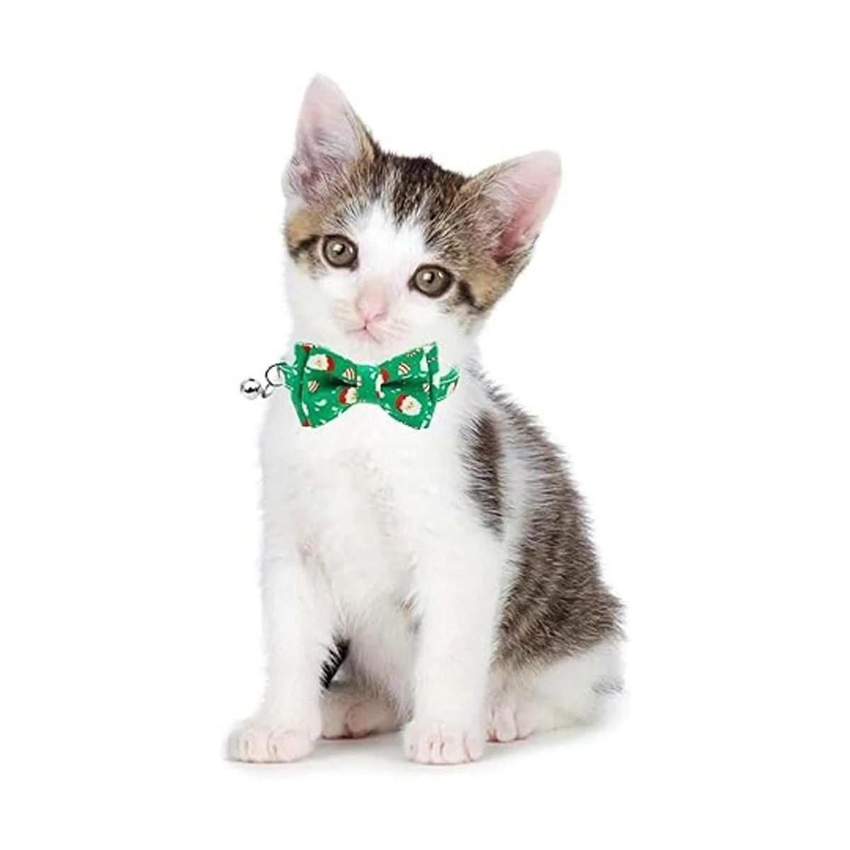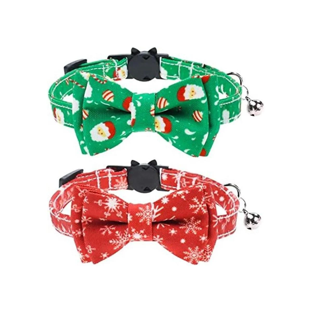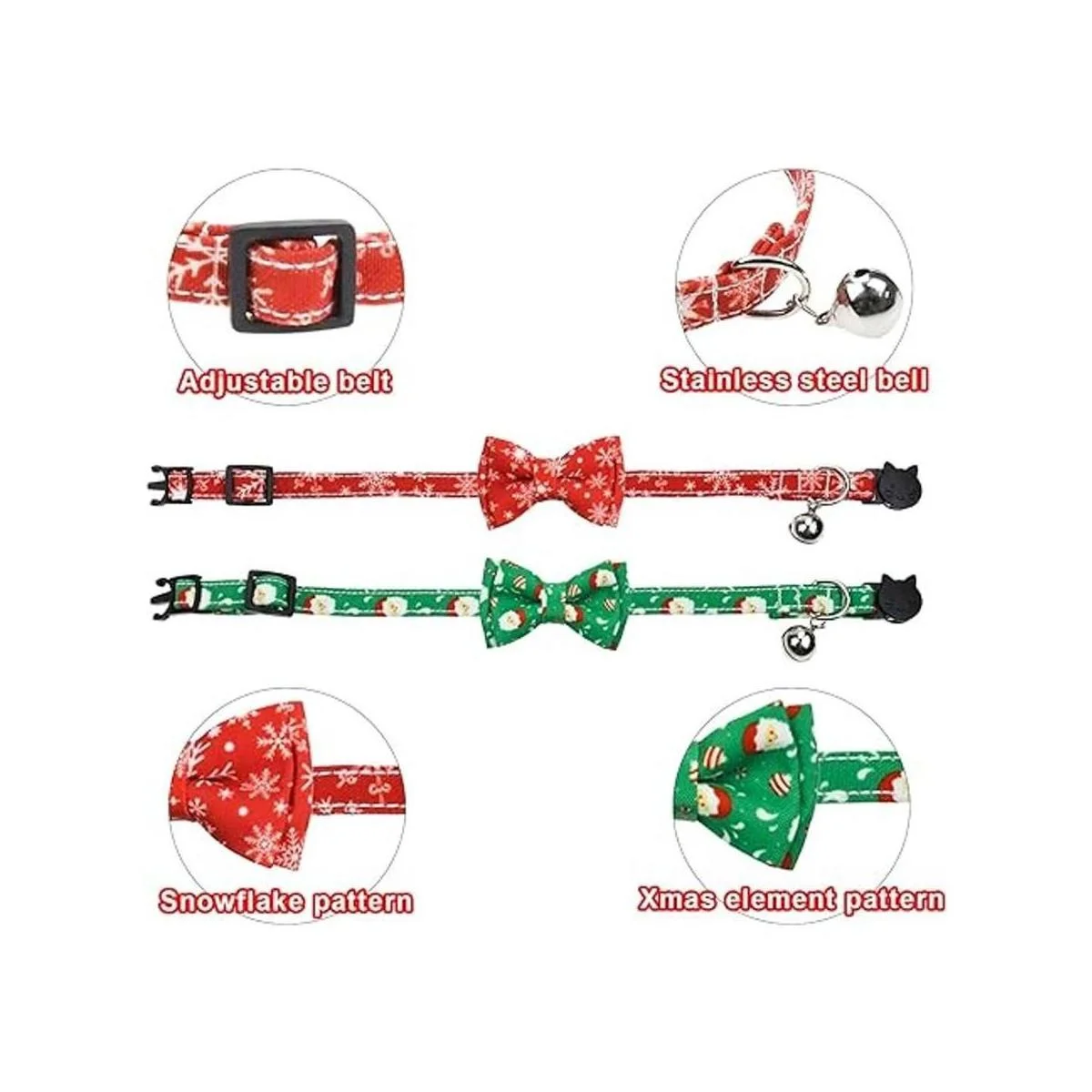 Malier Collar de gato con patrón de copo de nieve de Navidad, pajarita y campana pequeña, adorable collar con hebilla ajustable ligera, accesorios para mascotas, para gatitos, gatos, cachorros