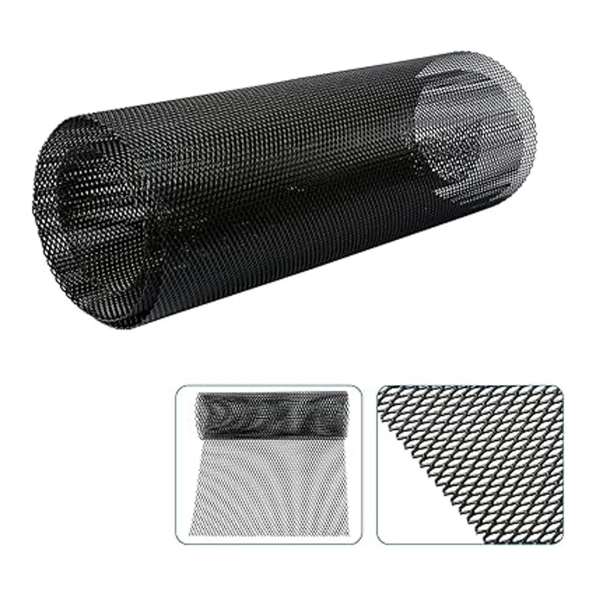 Malla universal para parrilla de automóvil de 40 x 13 pulgadas, inserto de rejilla automotriz de aleación de aluminio pintada en negro, rollo de malla multifuncional 0.118 x 0.236 in agujero rómbico