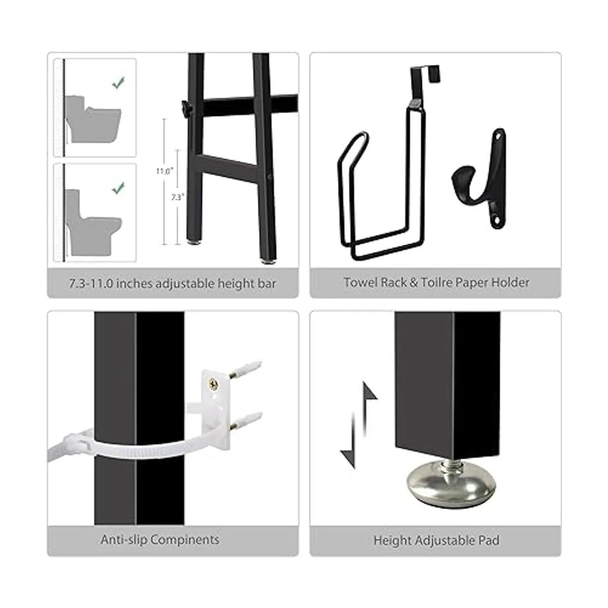 Ahorra cada centímetro de espacio: elige este estante de almacenamiento sobre el inodoro, no necesitas desperdiciar valioso espacio de almacenamiento para artículos de baño de espacios pequeños. El espaciador de baño de 3 niveles con soporte para papel higiénico y gancho para toallas te permite colocar todos los elementos esenciales como toallas, papel de rollo, revistas, velas o cualquier otro elemento esencial de baño.