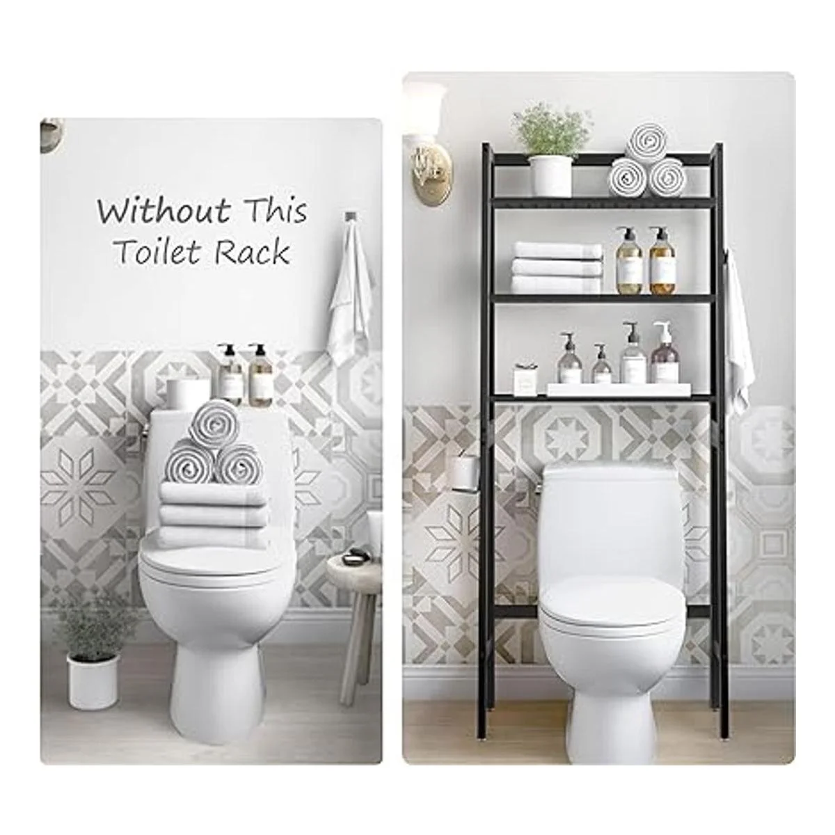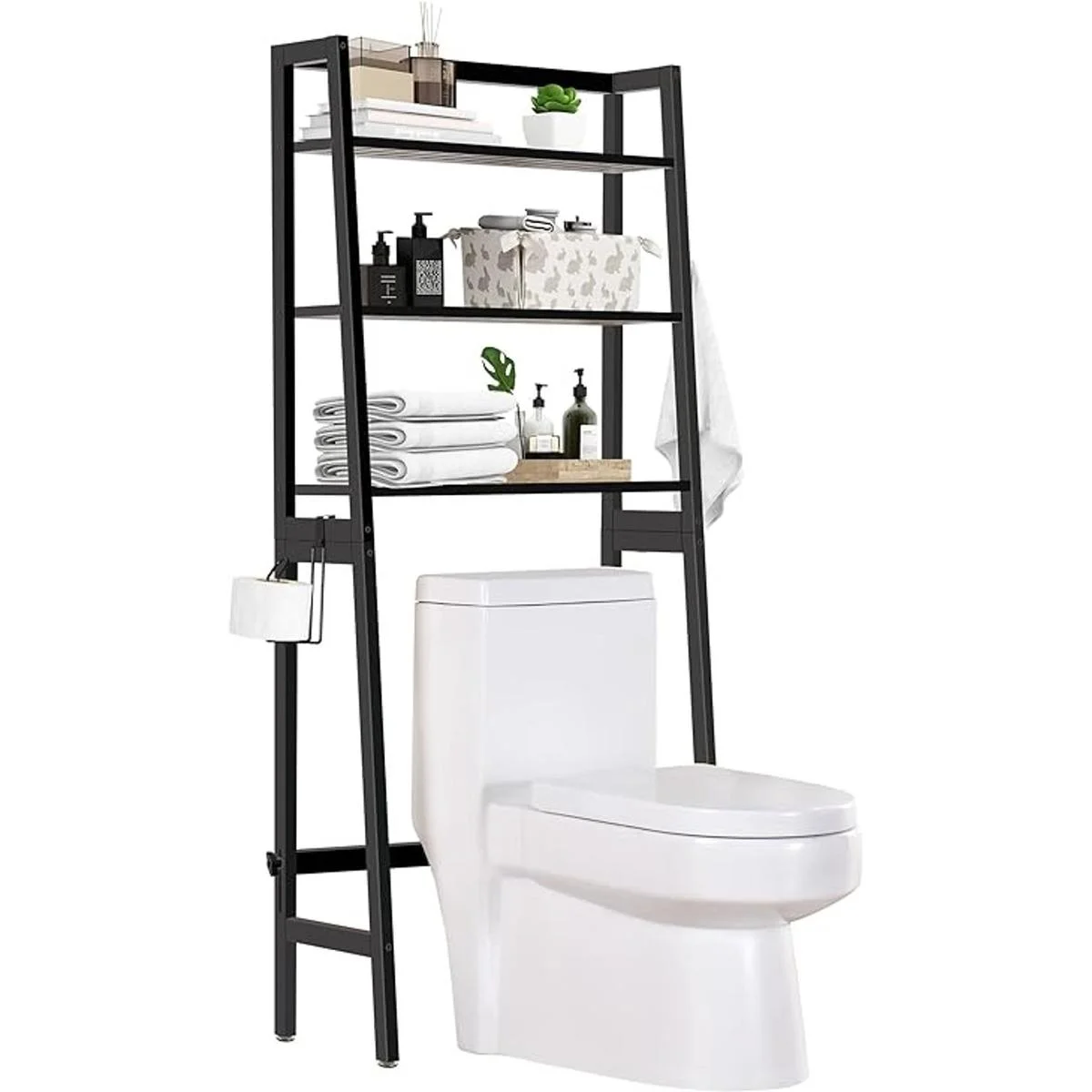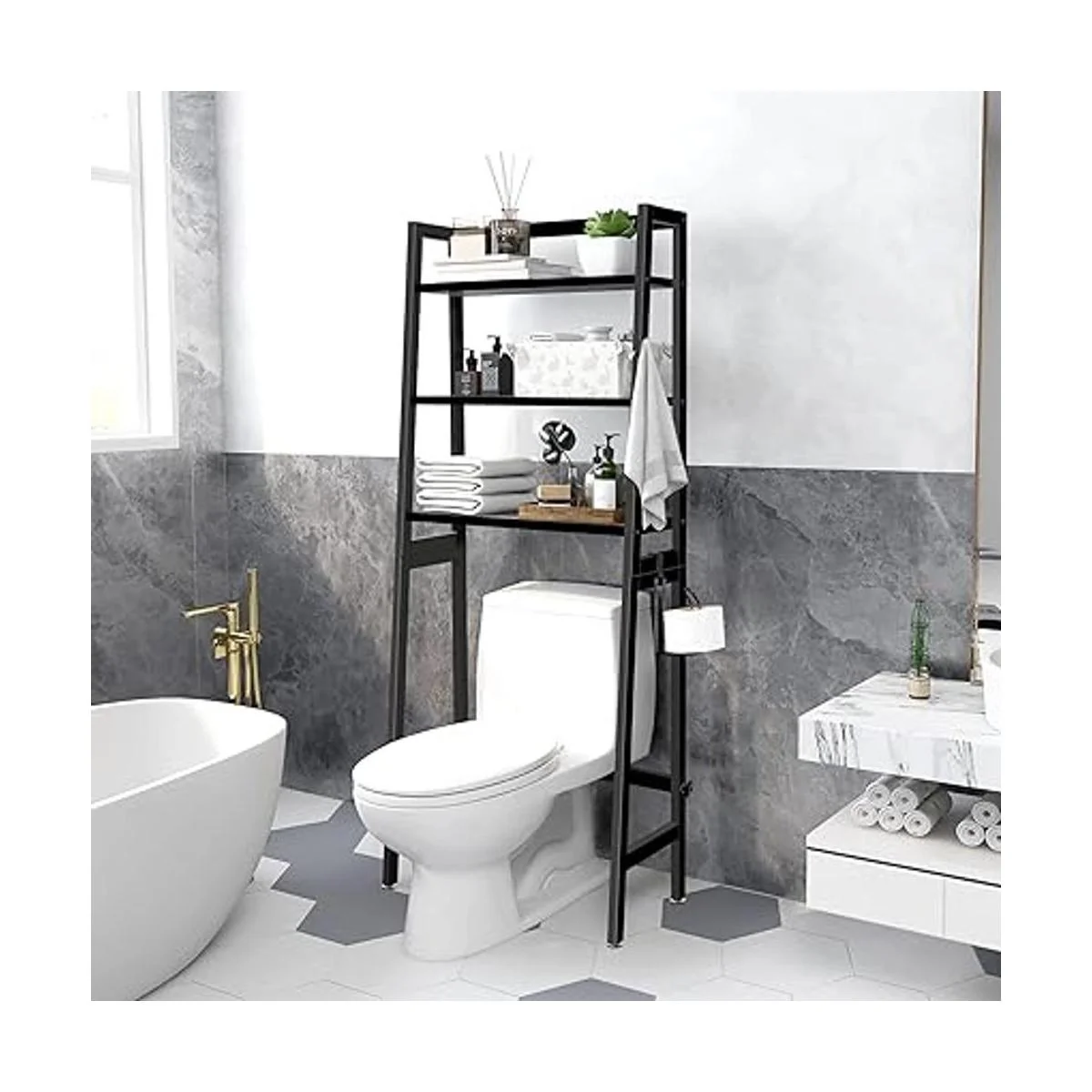 MallKing Estante de almacenamiento para inodoro, 3 niveles sobre el inodoro, ahorro de espacio de baño, 100 madera y fácil de montar negro