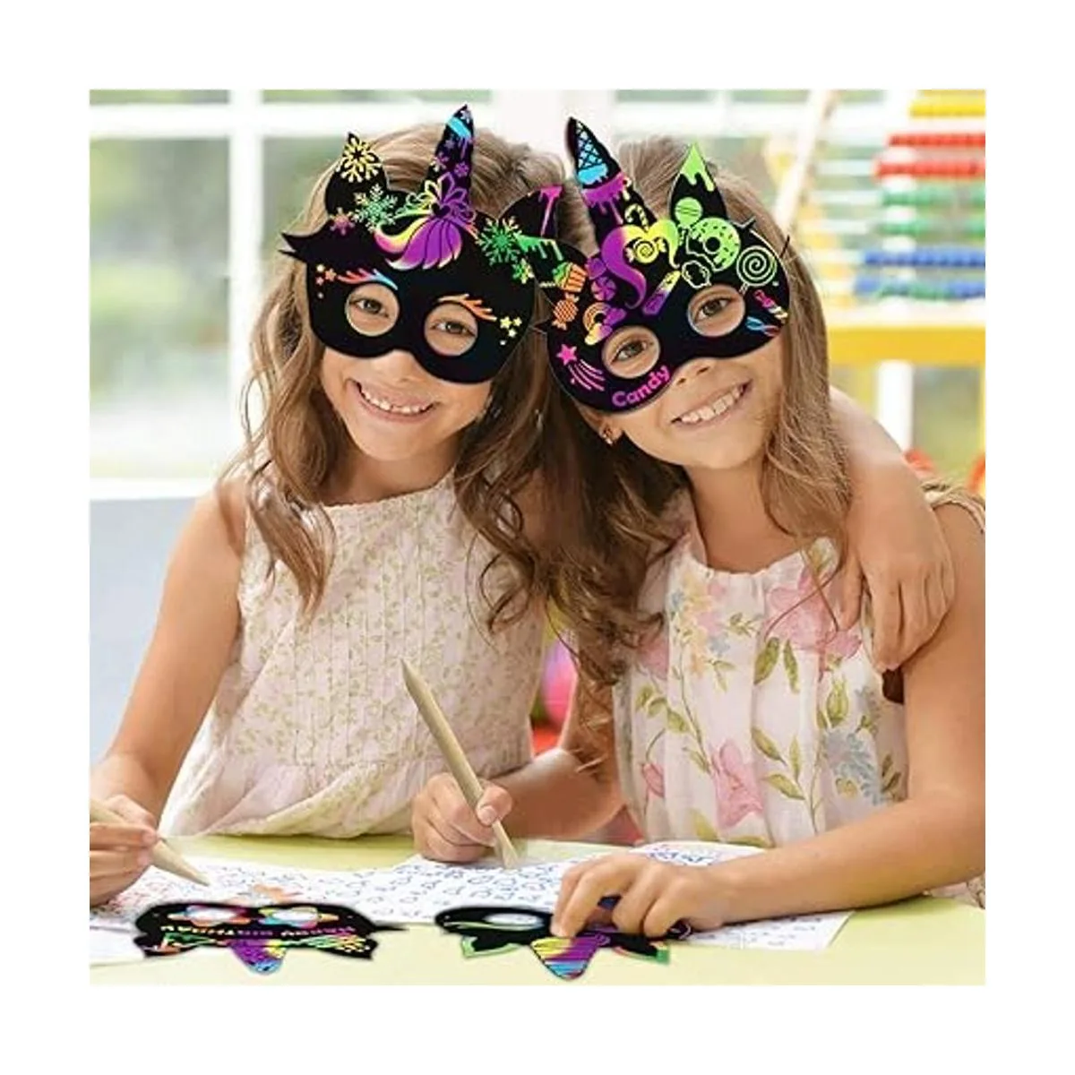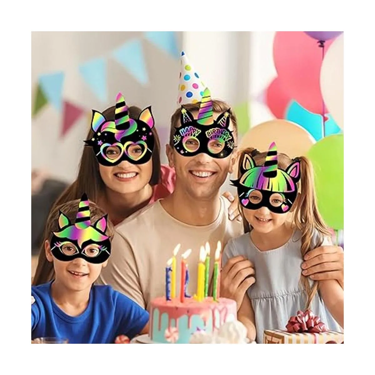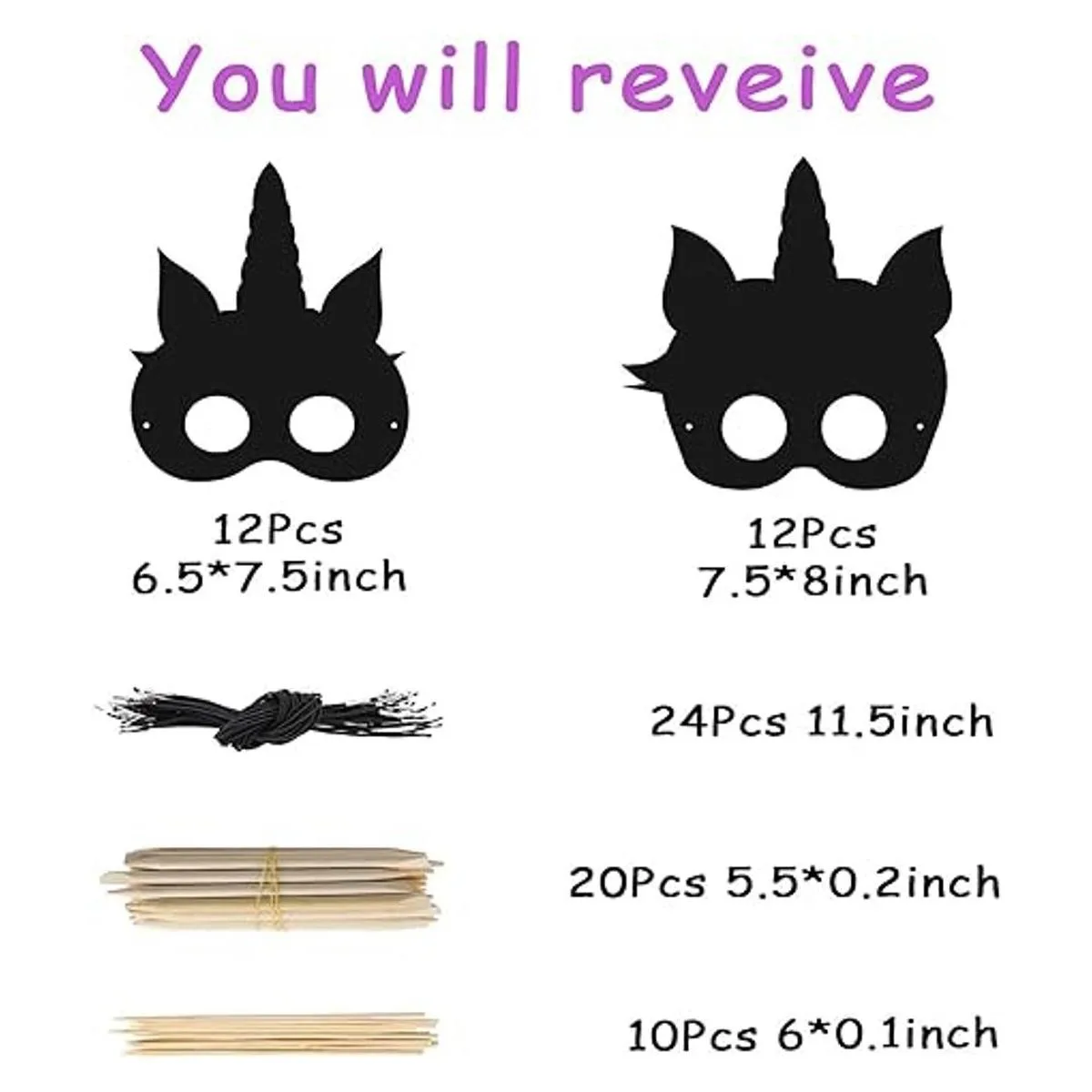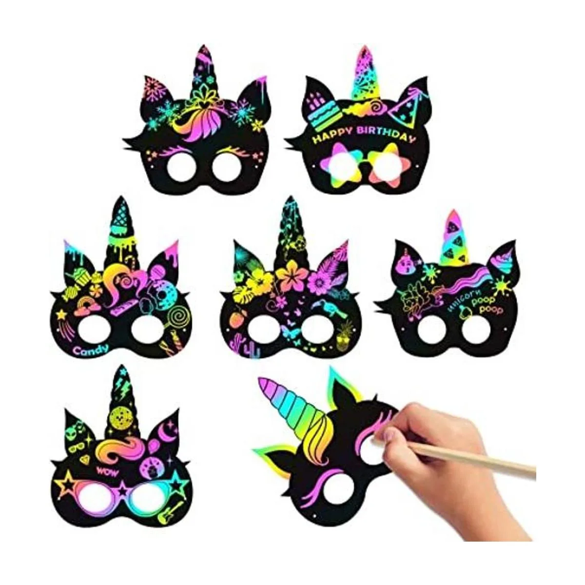 MALLMALL6 24 máscaras de unicornio, arco iris, rasguños, unicornio, máscaras de bricolaje, recuerdos de fiesta, tablero de rascadores, tema de unicornio, suministros de fiesta de cumpleaños, decoración, disfraces, kit de manualidades para niños y niñas