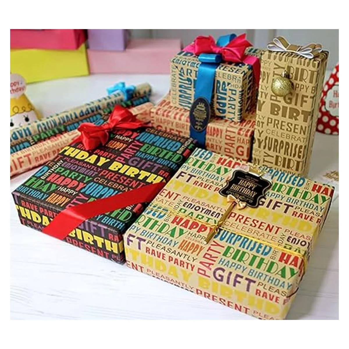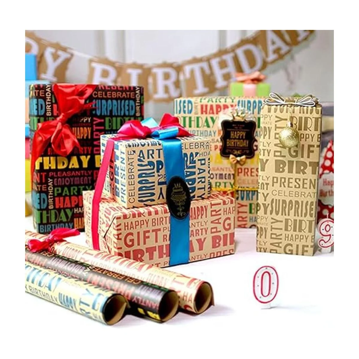 Diseño único: este juego de papel de regalo de cumpleaños viene con 5 divertidos colores y diseños Happy Birthday. El diseño alegre hace que tu regalo se vea más adorable y fuera de lo común.