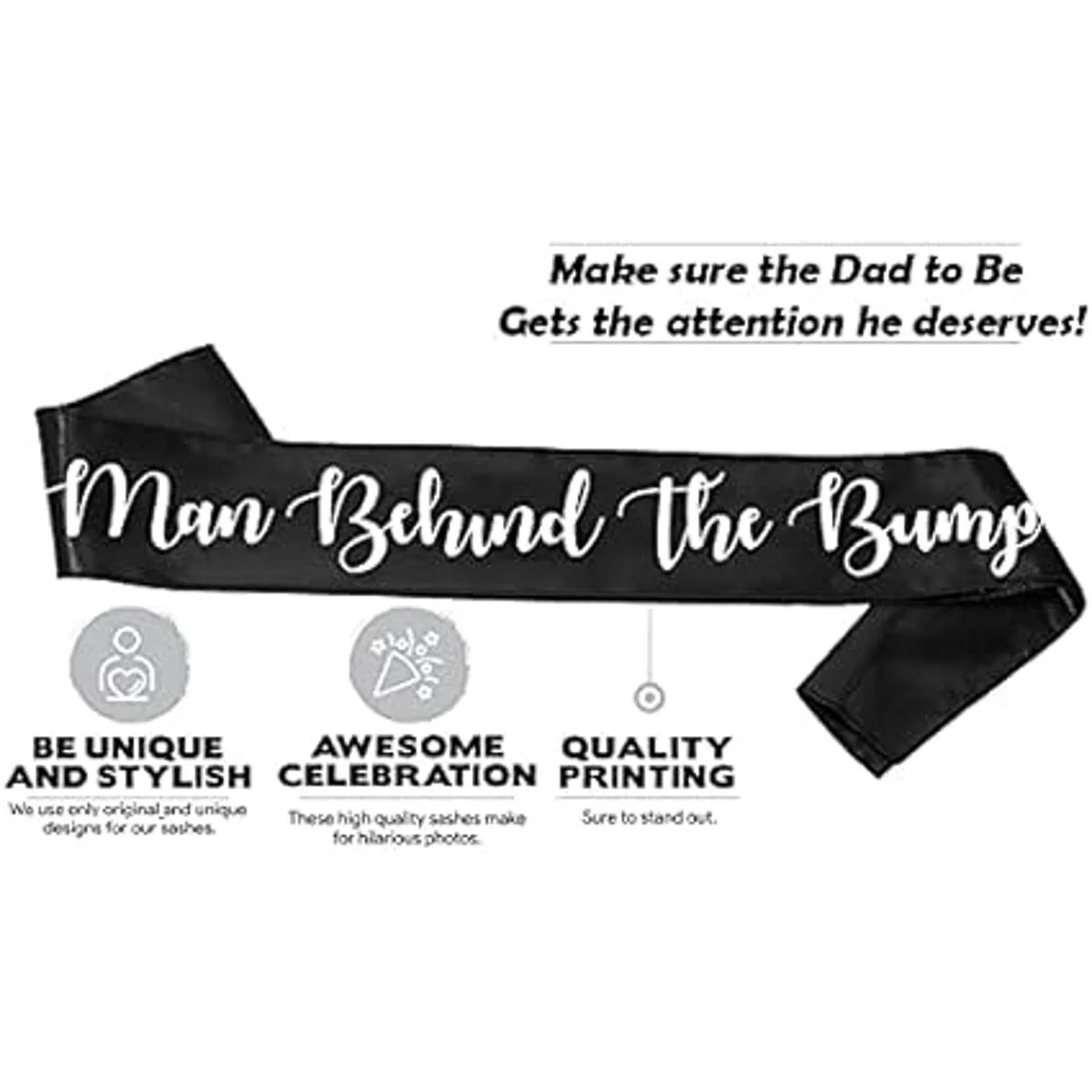 Man Behind The Bump Divertida banda de baby shower para que papá sea, negro con letras blancas, decoración de fiesta de baby shower, suministros de regalo para papá para ser bebé, ideas de revelación de género, recuerdos de nuevo padre